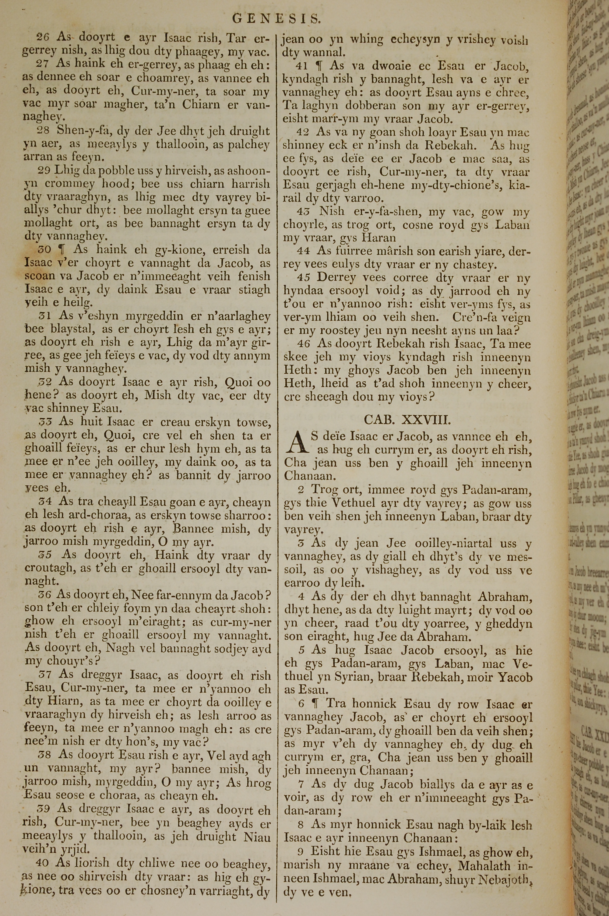 1819年曼岛语圣经 创世记 27 章 26 节到 28 章 9 节