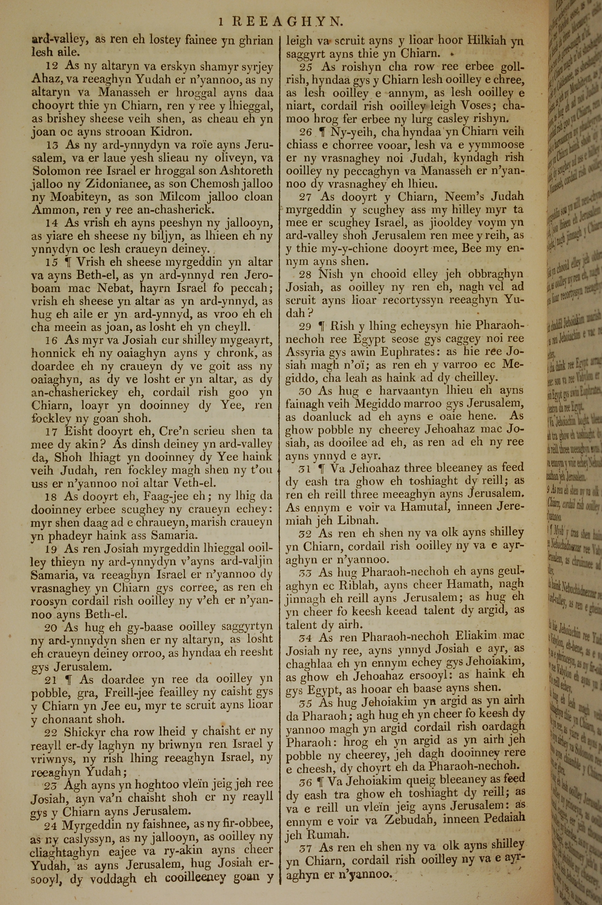 1819年曼岛语圣经 列王纪下 23 章 12 节到 23 章 37 节