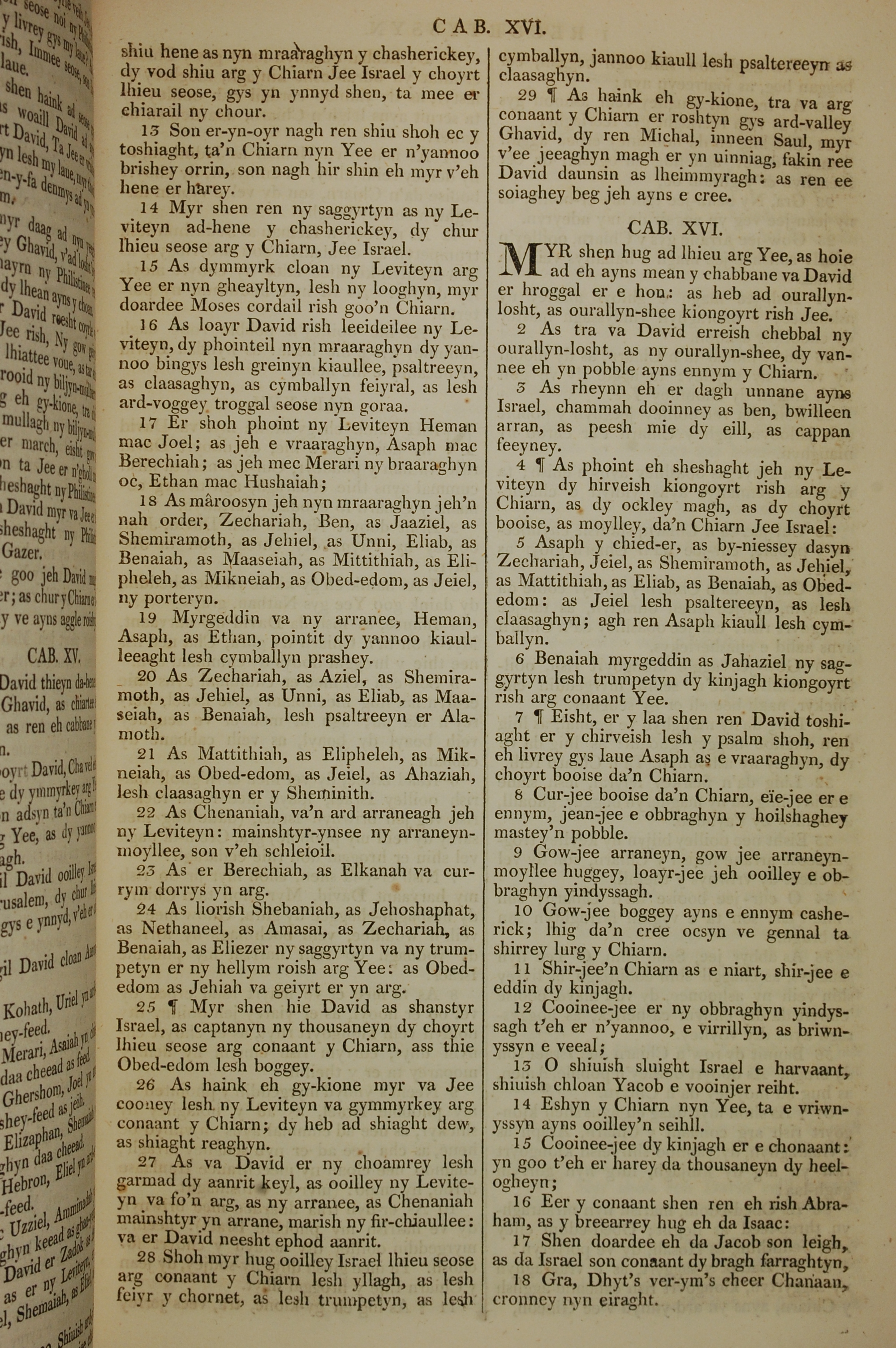 1819年曼岛语圣经 历代志上 15 章 13 节到 16 章 18 节