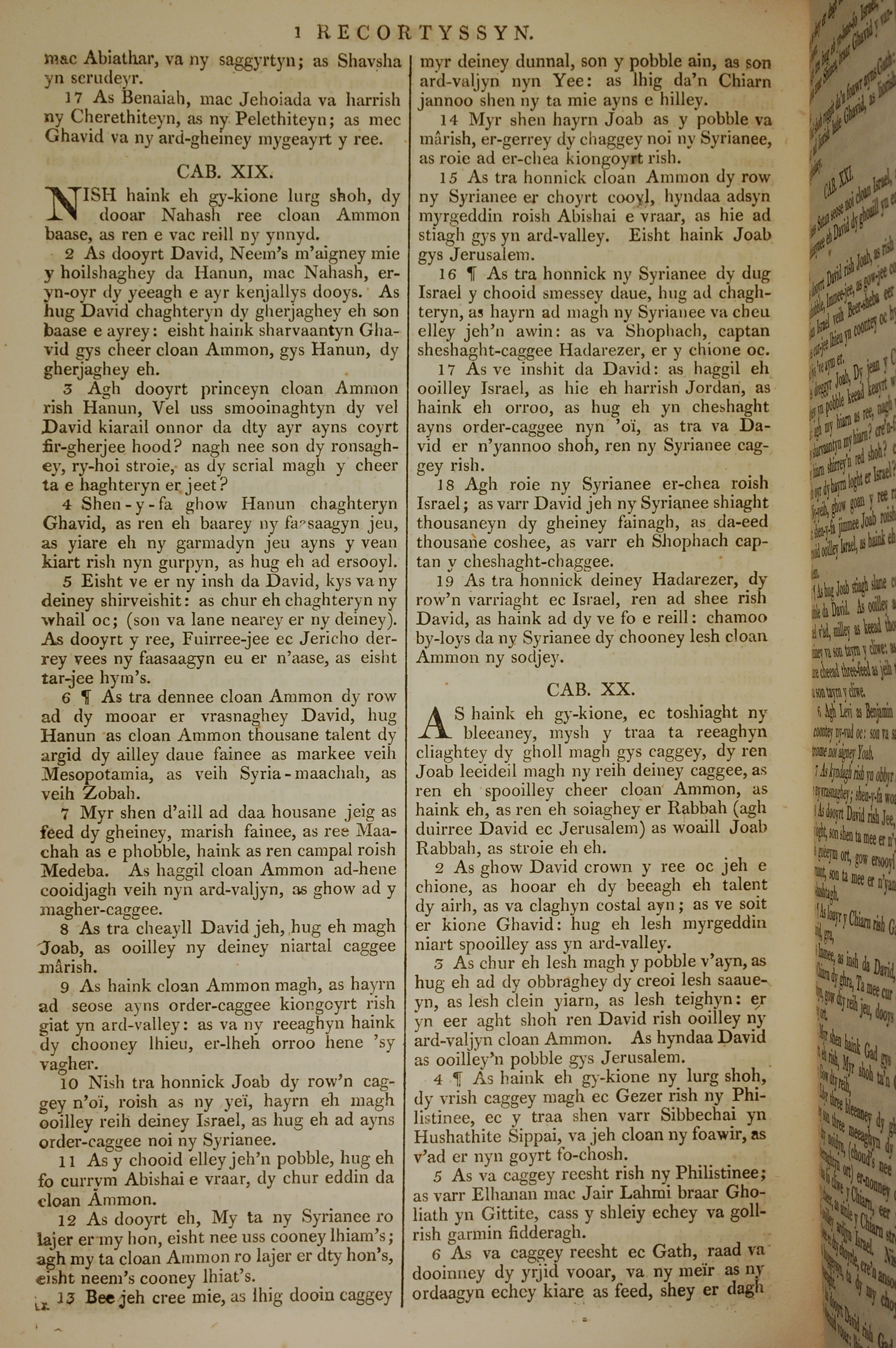 1819年曼岛语圣经 历代志上 18 章 17 节到 20 章 6 节