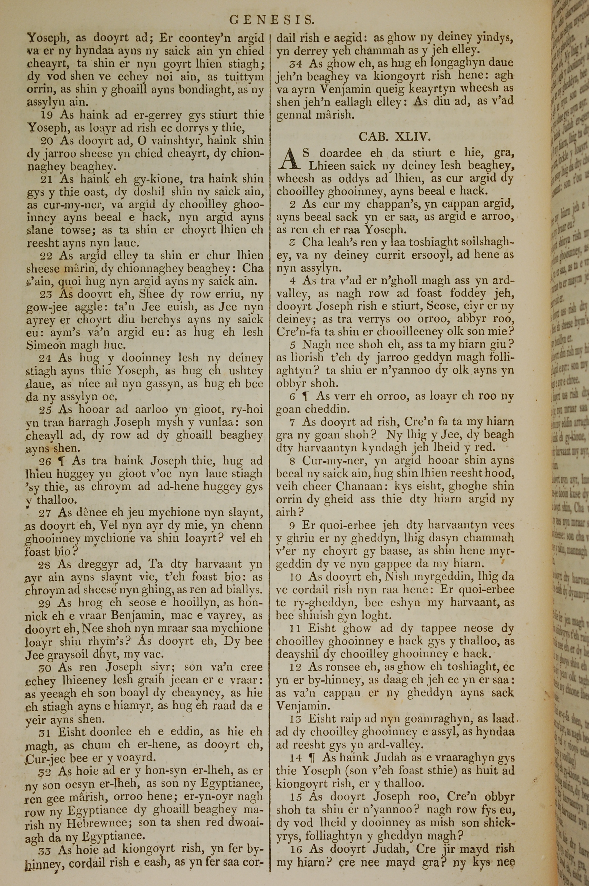 1819年曼岛语圣经 创世记 43 章 19 节到 44 章 16 节