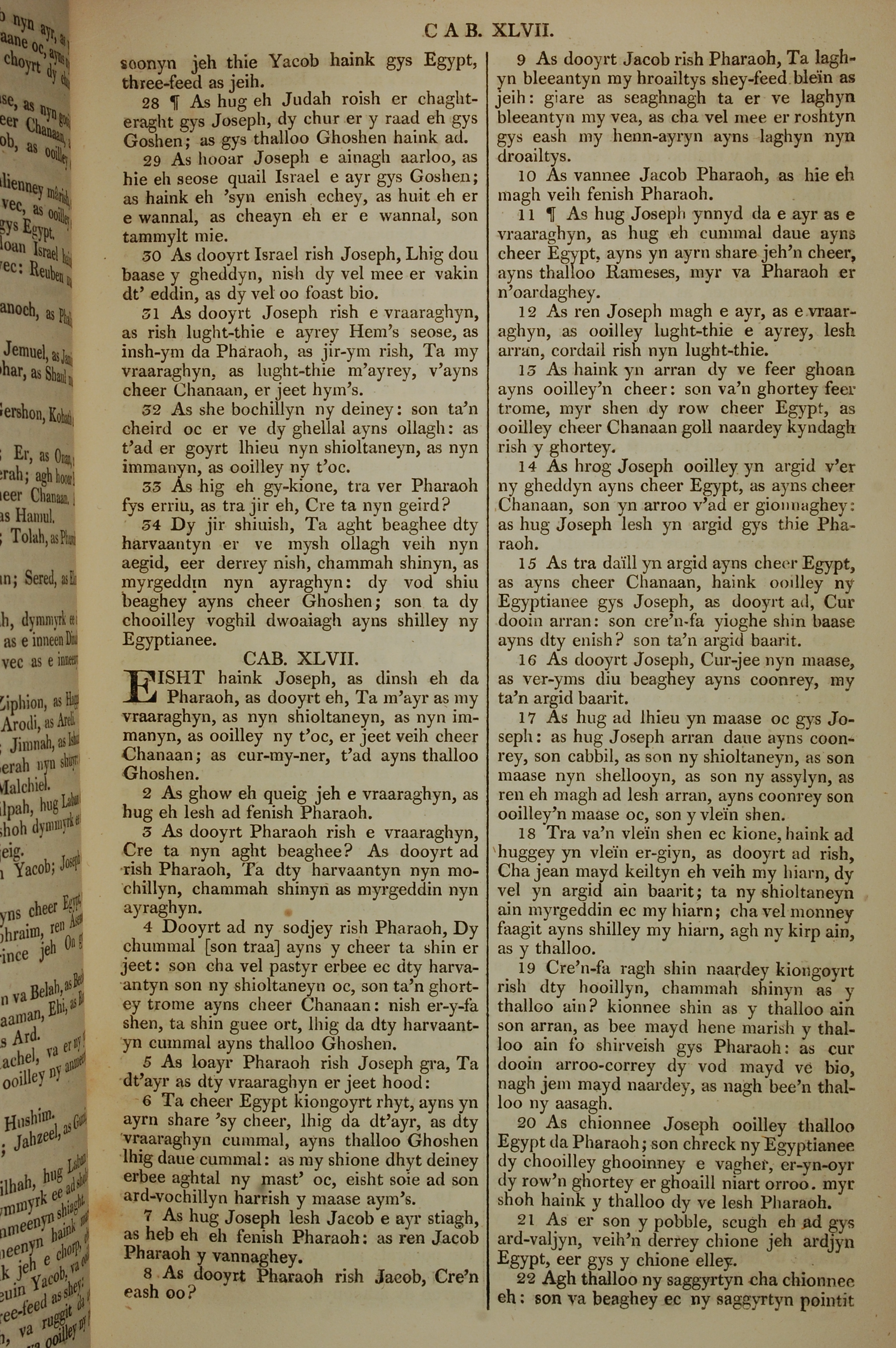 1819年曼岛语圣经 创世记 46 章 28 节到 47 章 22 节
