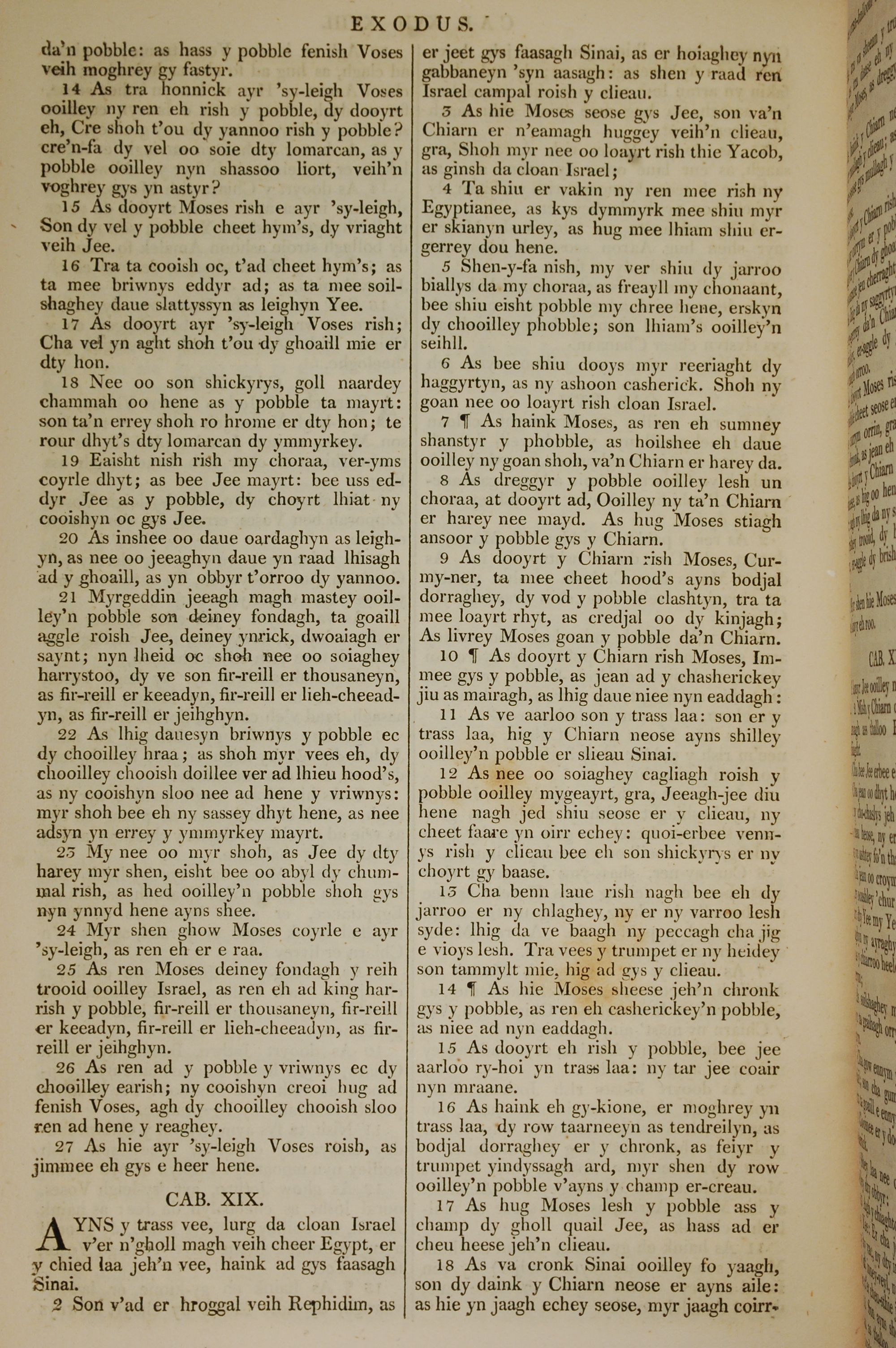 1819年曼岛语圣经 出埃及记 18 章 14 节到 19 章 18 节