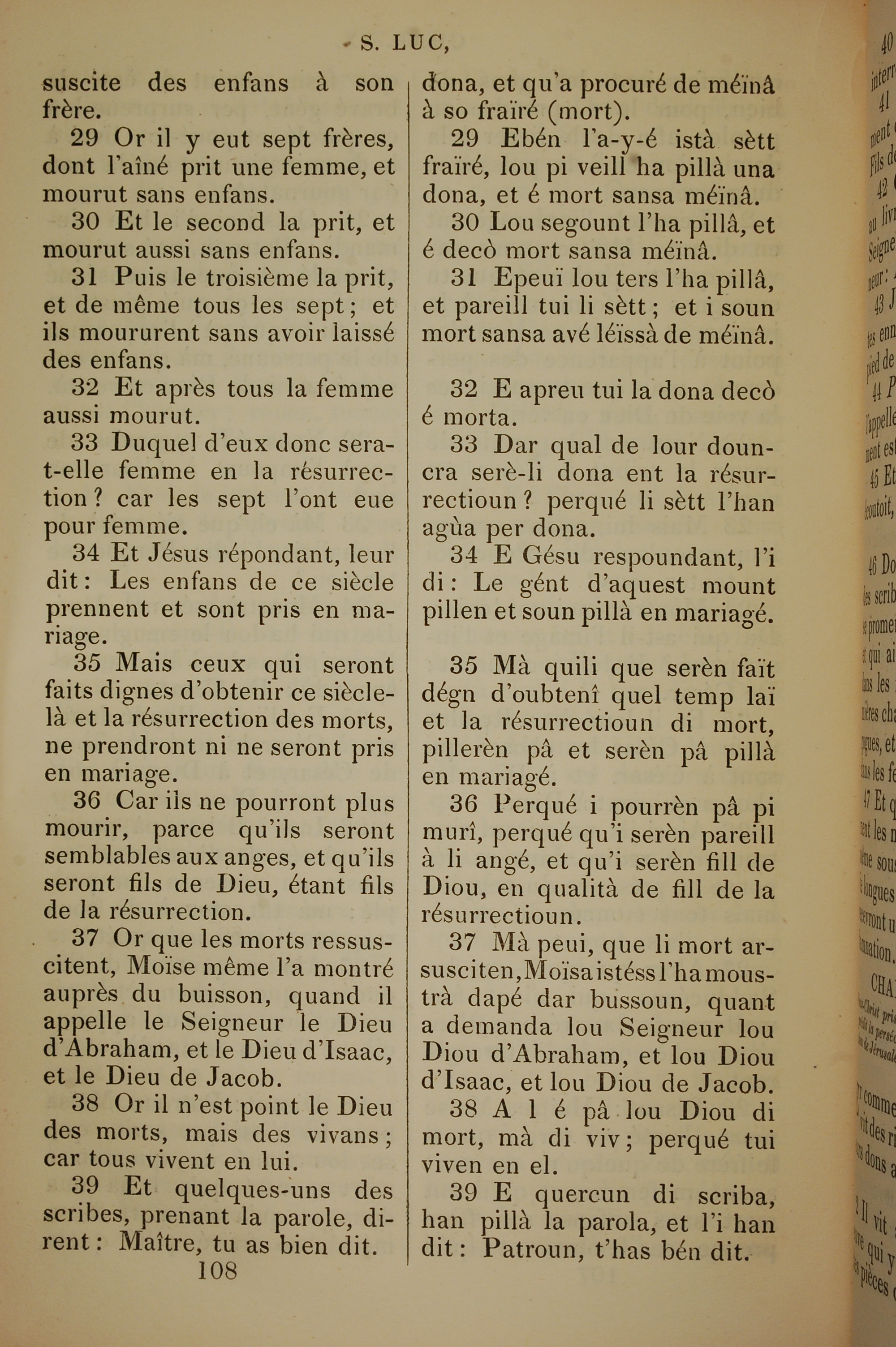 1832年法文圣经路加福音及约翰福音 路加福音 20 章 29 节到 20 章 39 节