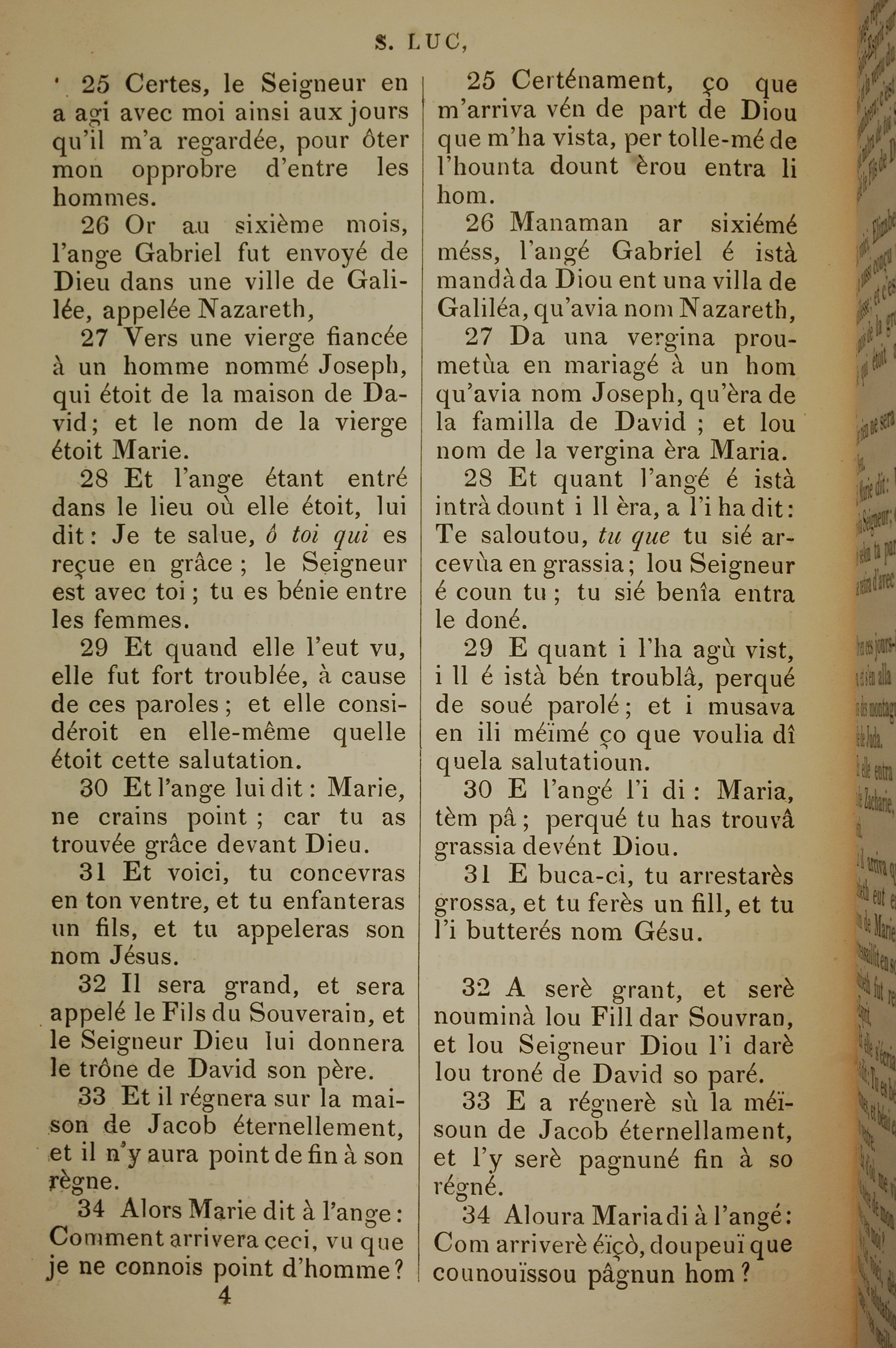 1832年法文圣经路加福音及约翰福音 路加福音 1 章 25 节到 1 章 34 节