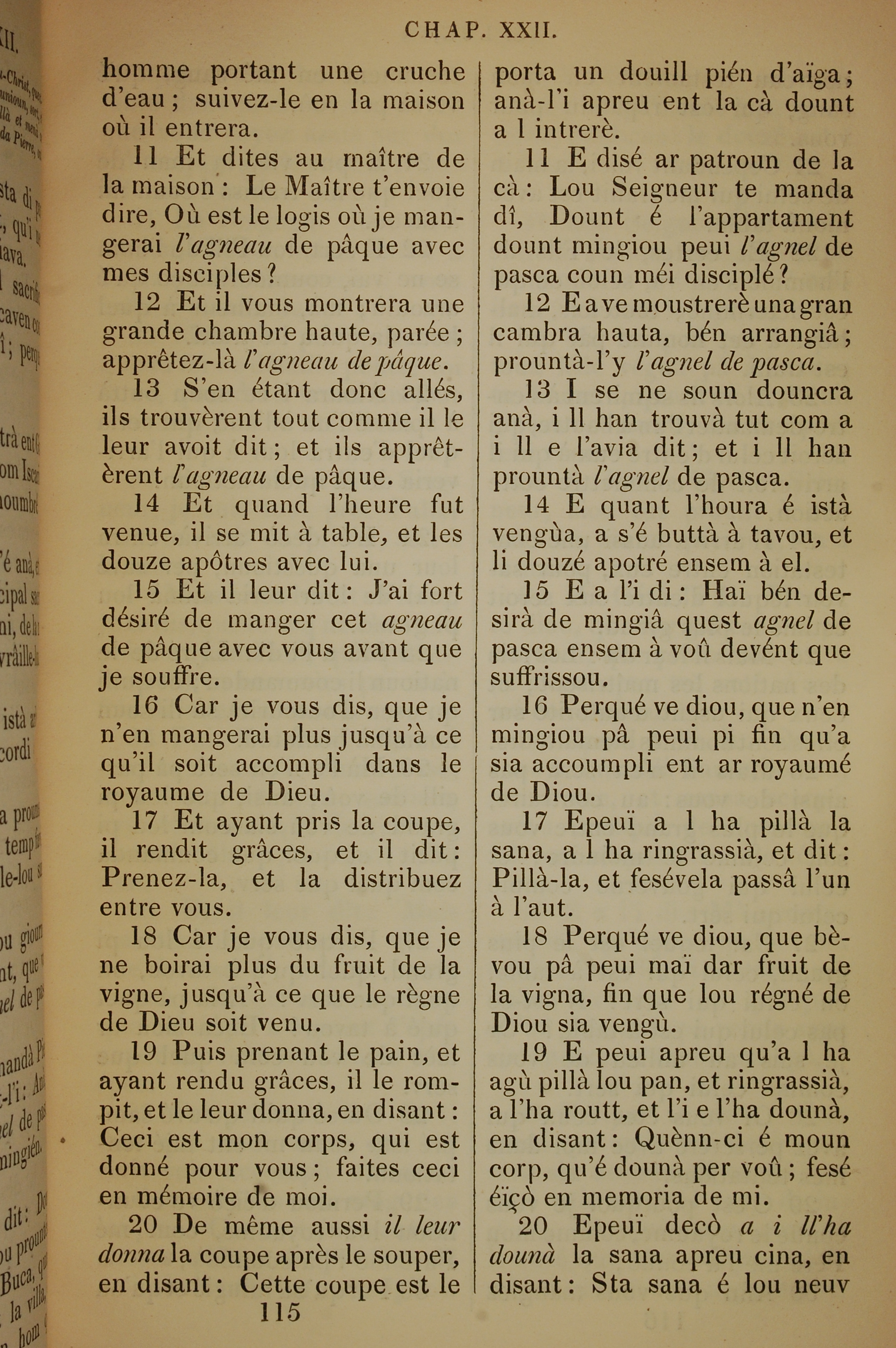 1832年法文圣经路加福音及约翰福音 路加福音 22 章 11 节到 22 章 20 节