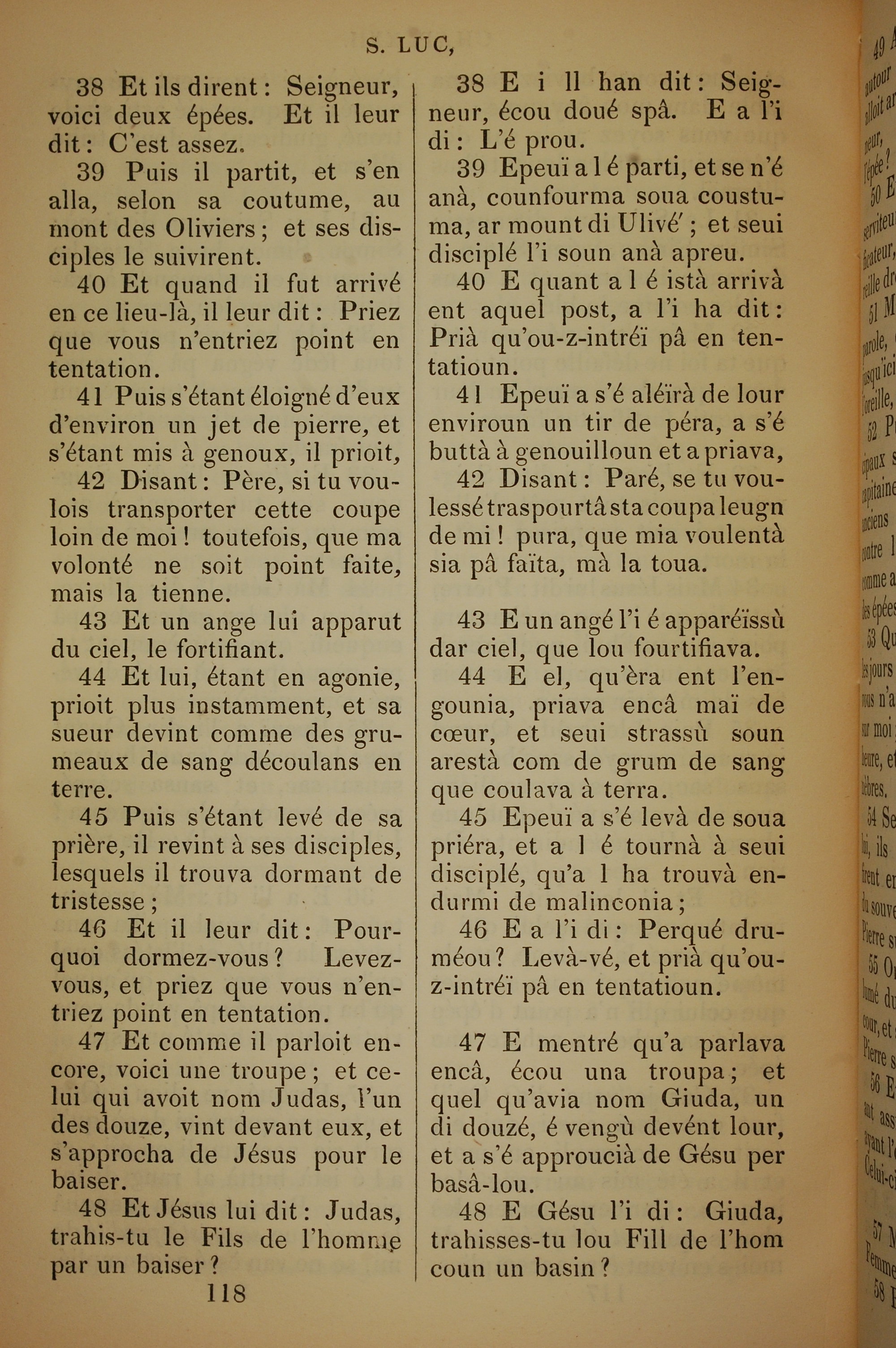1832年法文圣经路加福音及约翰福音 路加福音 22 章 38 节到 22 章 48 节