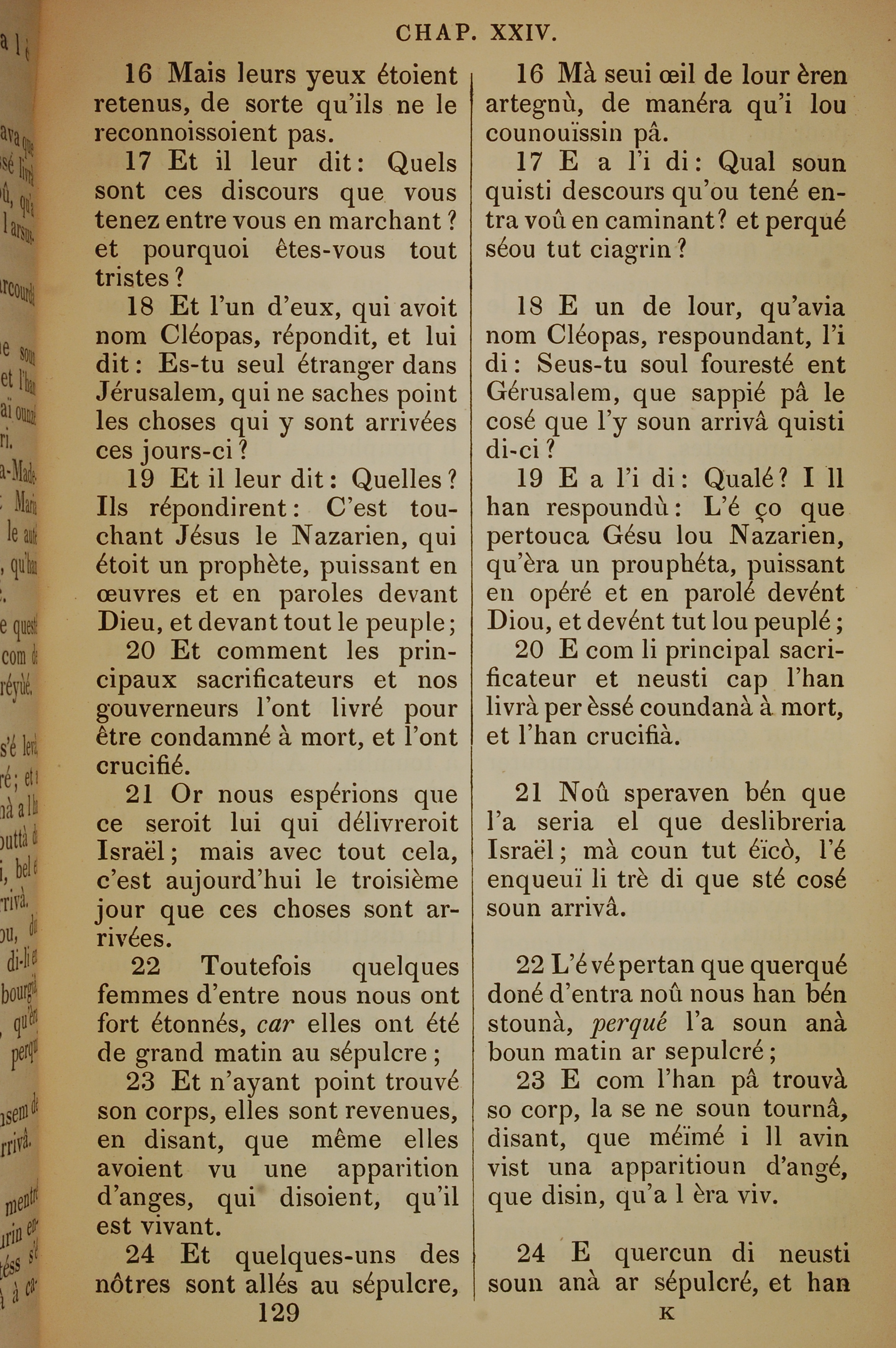 1832年法文圣经路加福音及约翰福音 路加福音 24 章 16 节到 24 章 24 节