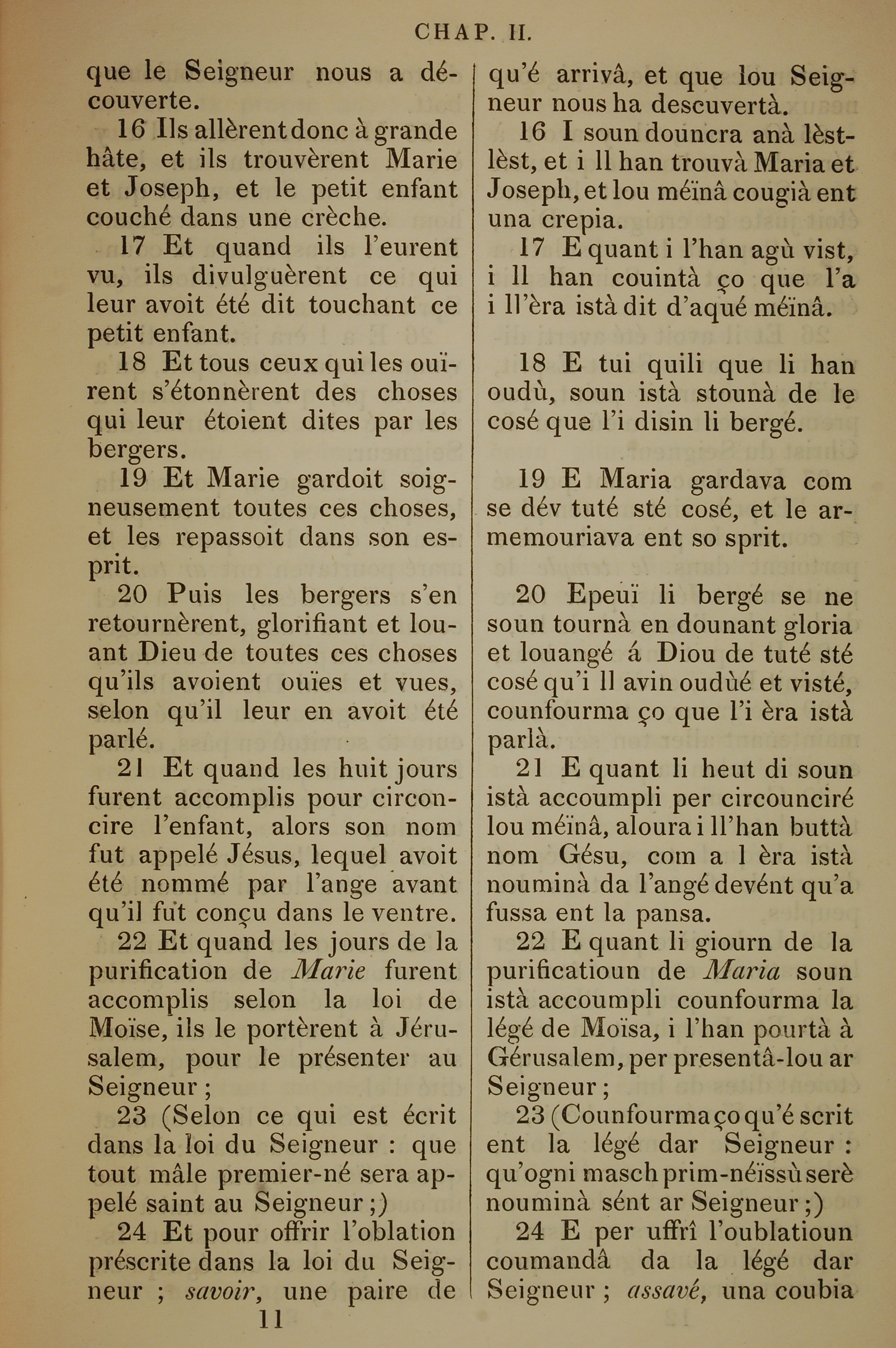 1832年法文圣经路加福音及约翰福音 路加福音 2 章 16 节到 2 章 24 节