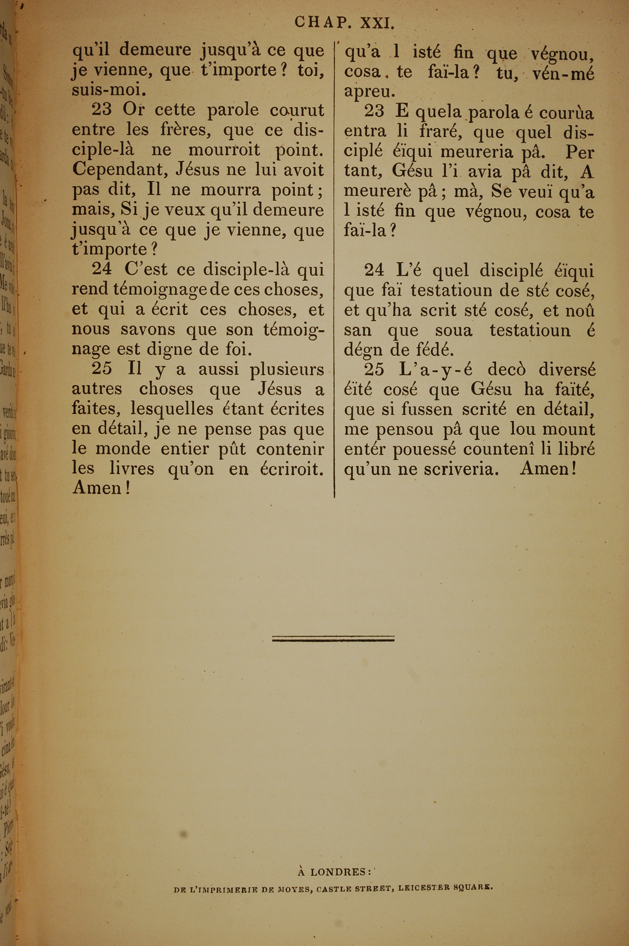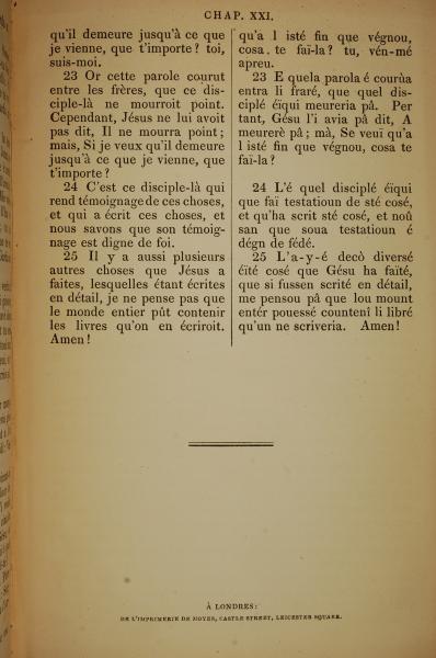 1832年法文圣经路加福音及约翰福音 约翰福音 21 章 23 节到 21 章 25 节