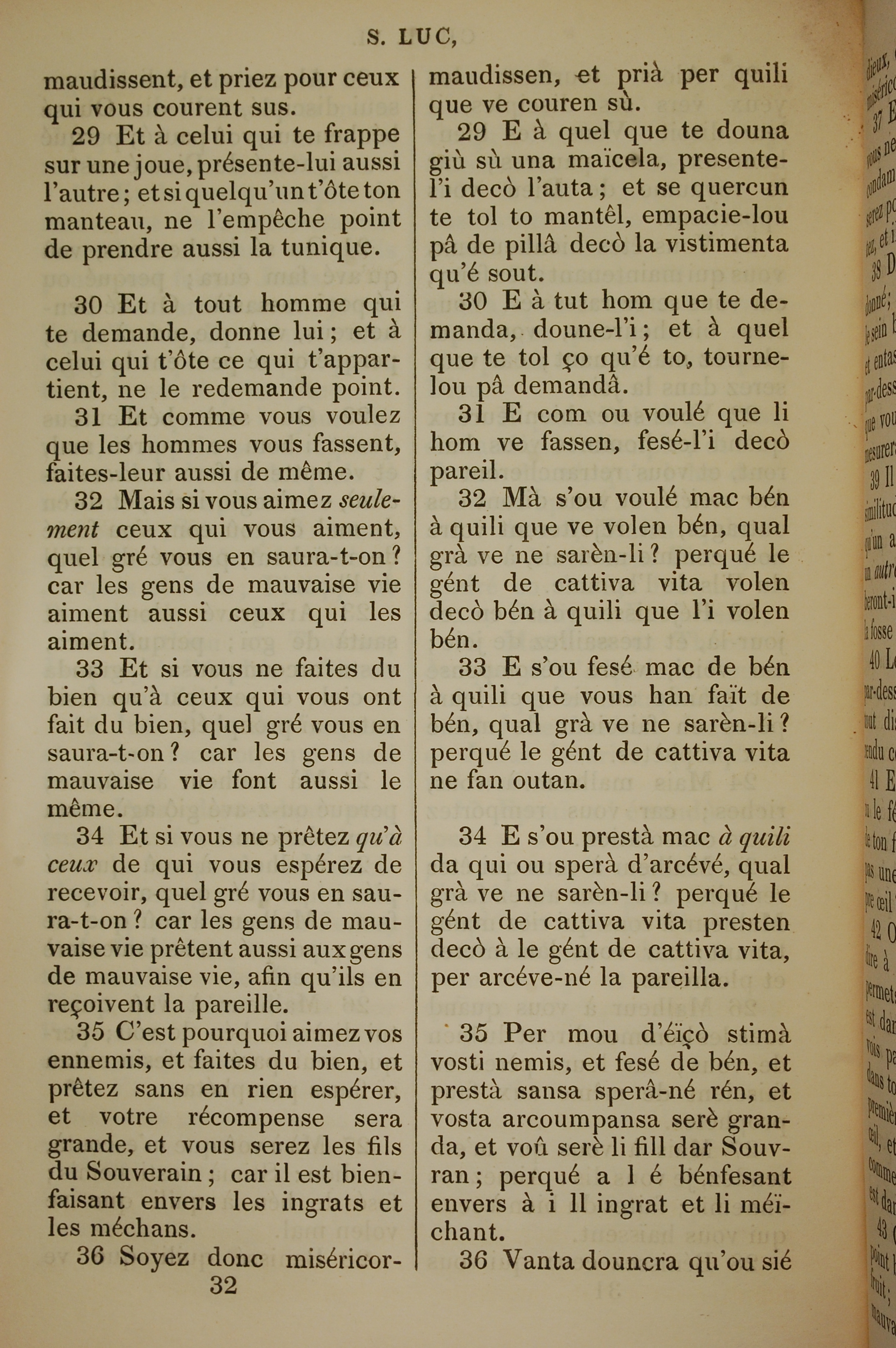 1832年法文圣经路加福音及约翰福音 路加福音 6 章 29 节到 6 章 36 节