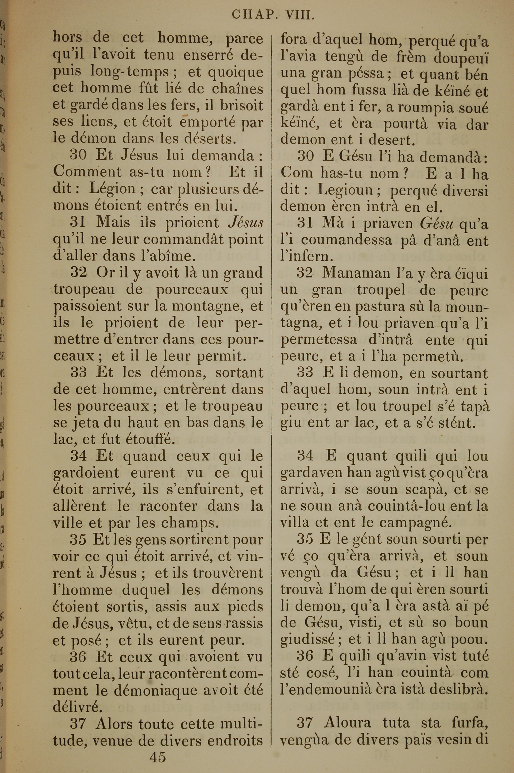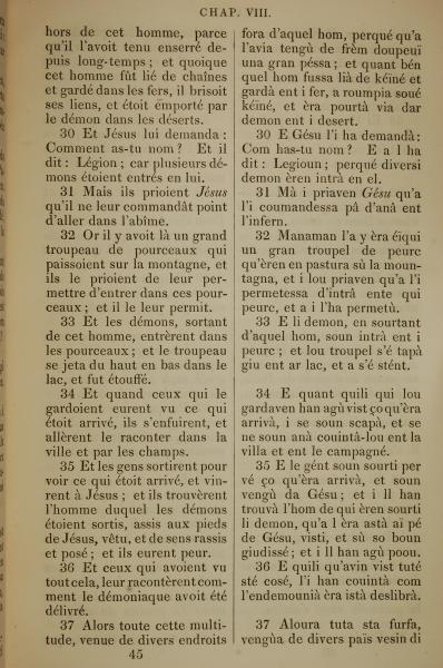1832年法文圣经路加福音及约翰福音 路加福音 8 章 30 节到 8 章 37 节
