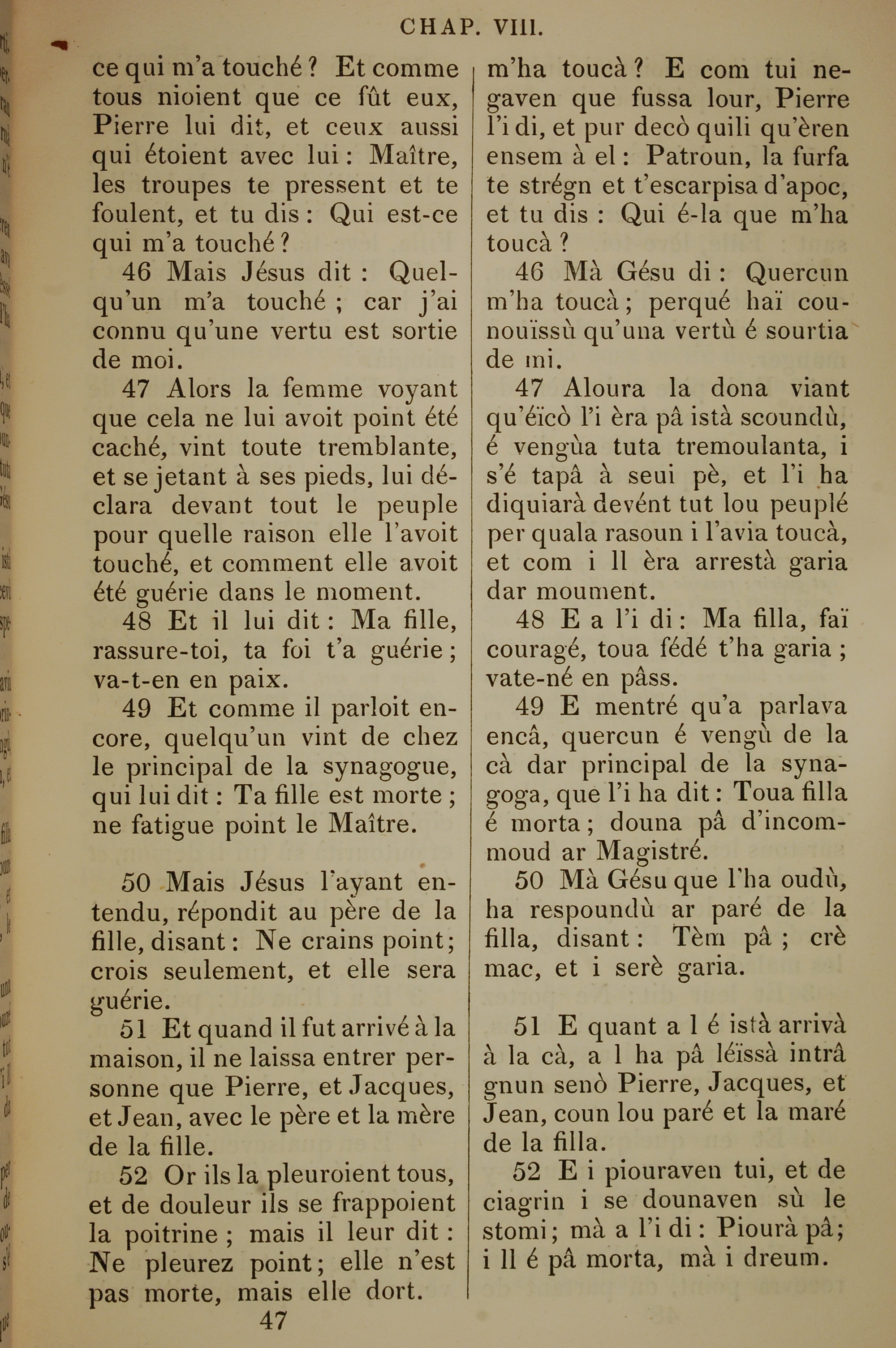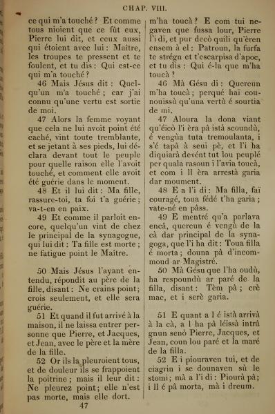 1832年法文圣经路加福音及约翰福音 路加福音 8 章 46 节到 8 章 52 节