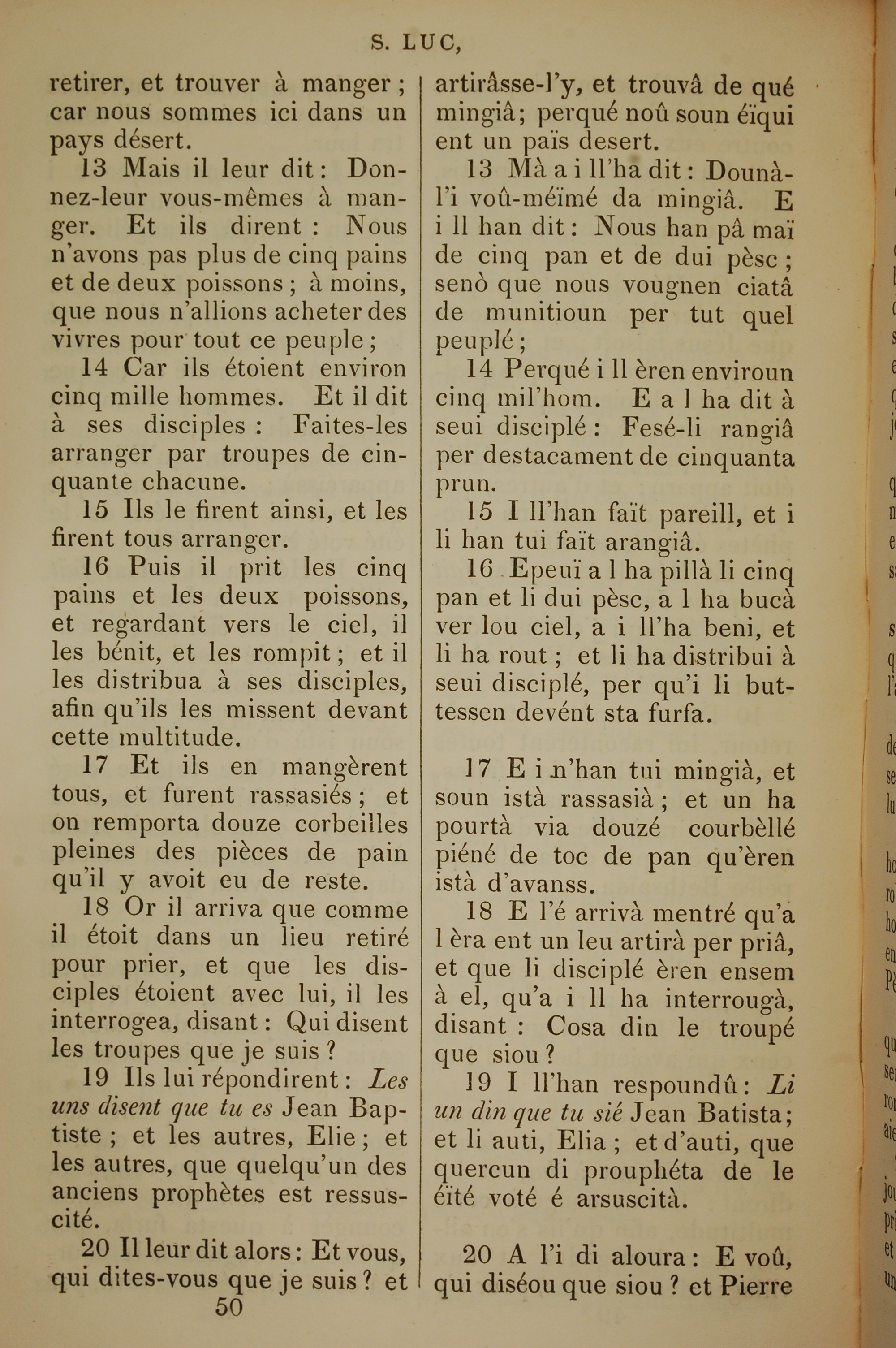 1832年法文圣经路加福音及约翰福音 路加福音 9 章 13 节到 9 章 20 节