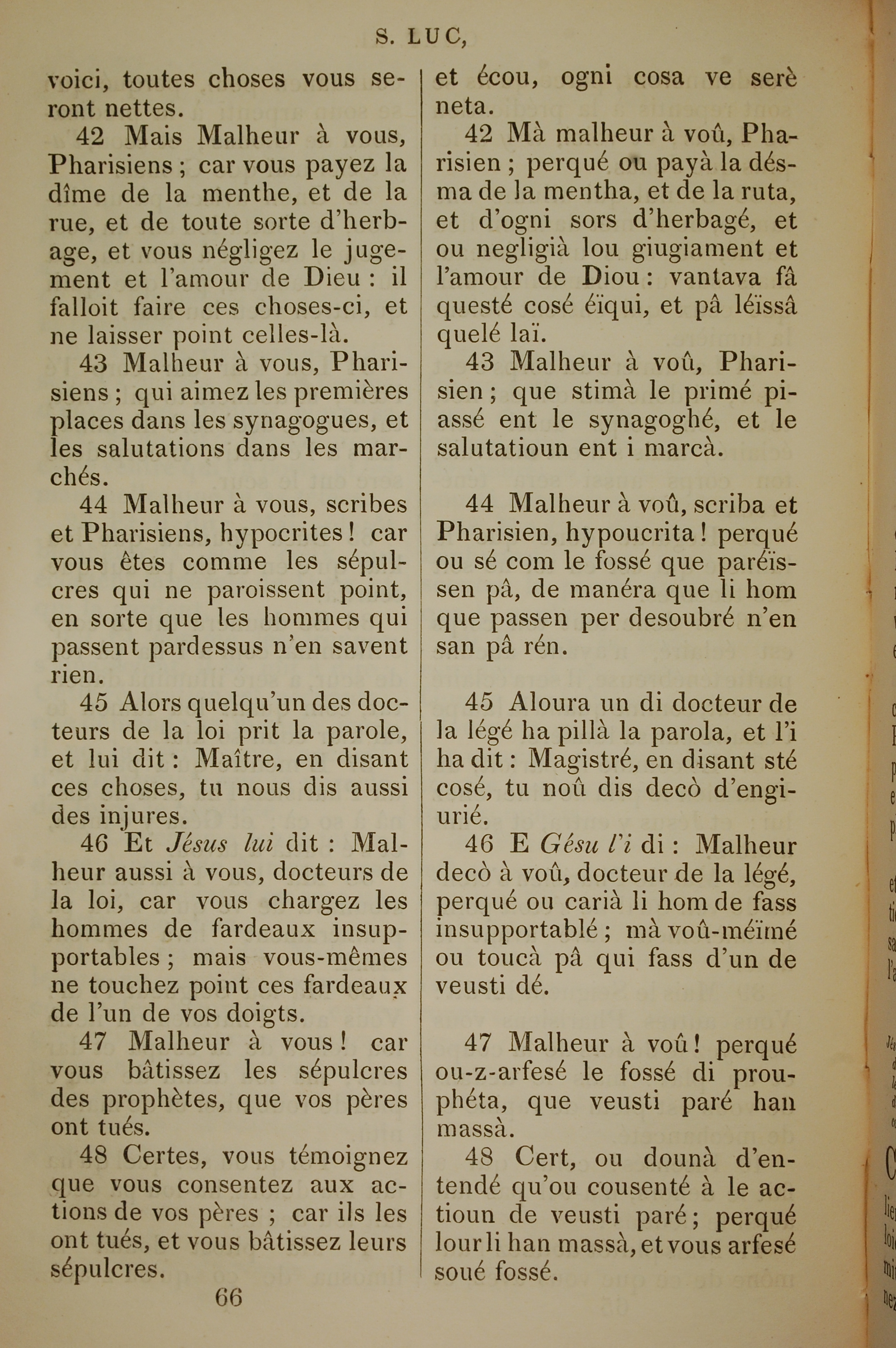 1832年法文圣经路加福音及约翰福音 路加福音 11 章 42 节到 11 章 48 节