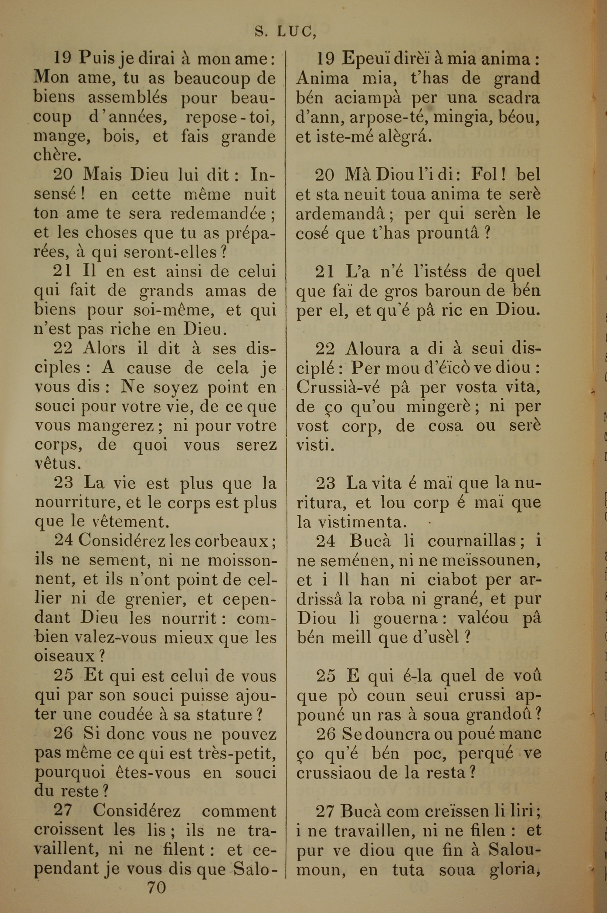 1832年法文圣经路加福音及约翰福音 路加福音 12 章 19 节到 12 章 27 节