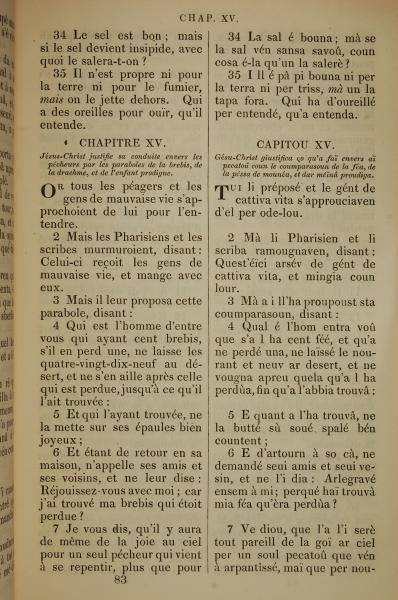 1832年法文圣经路加福音及约翰福音 路加福音 14 章 34 节到 15 章 7 节