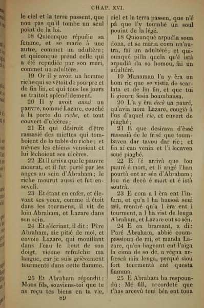 1832年法文圣经路加福音及约翰福音 路加福音 16 章 18 节到 16 章 25 节