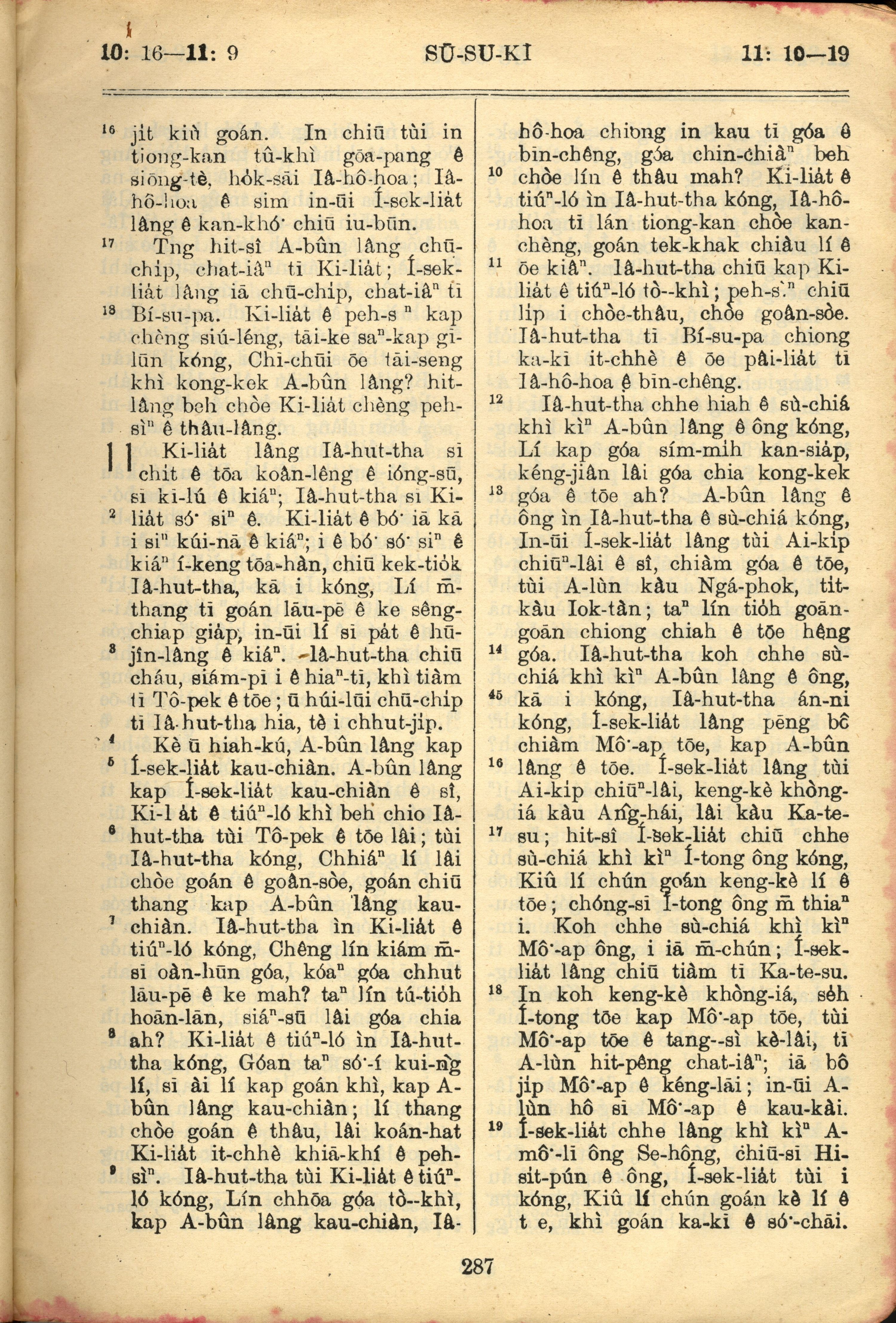 1957年巴克礼全罗台语圣经串珠版 士师记 10 章 16 节到 11 章 19 节