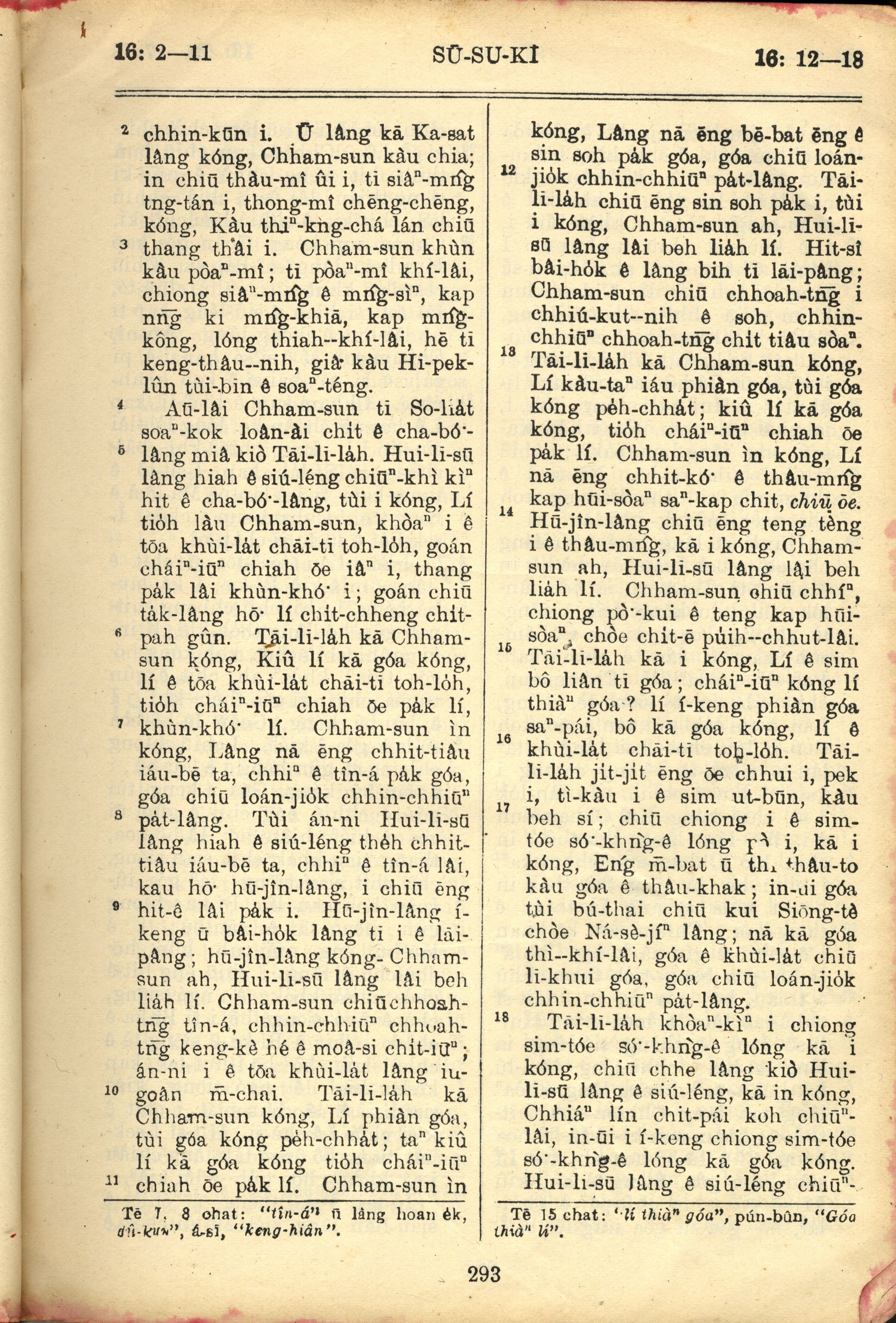 1957年巴克礼全罗台语圣经串珠版 士师记 16 章 2 节到 16 章 18 节