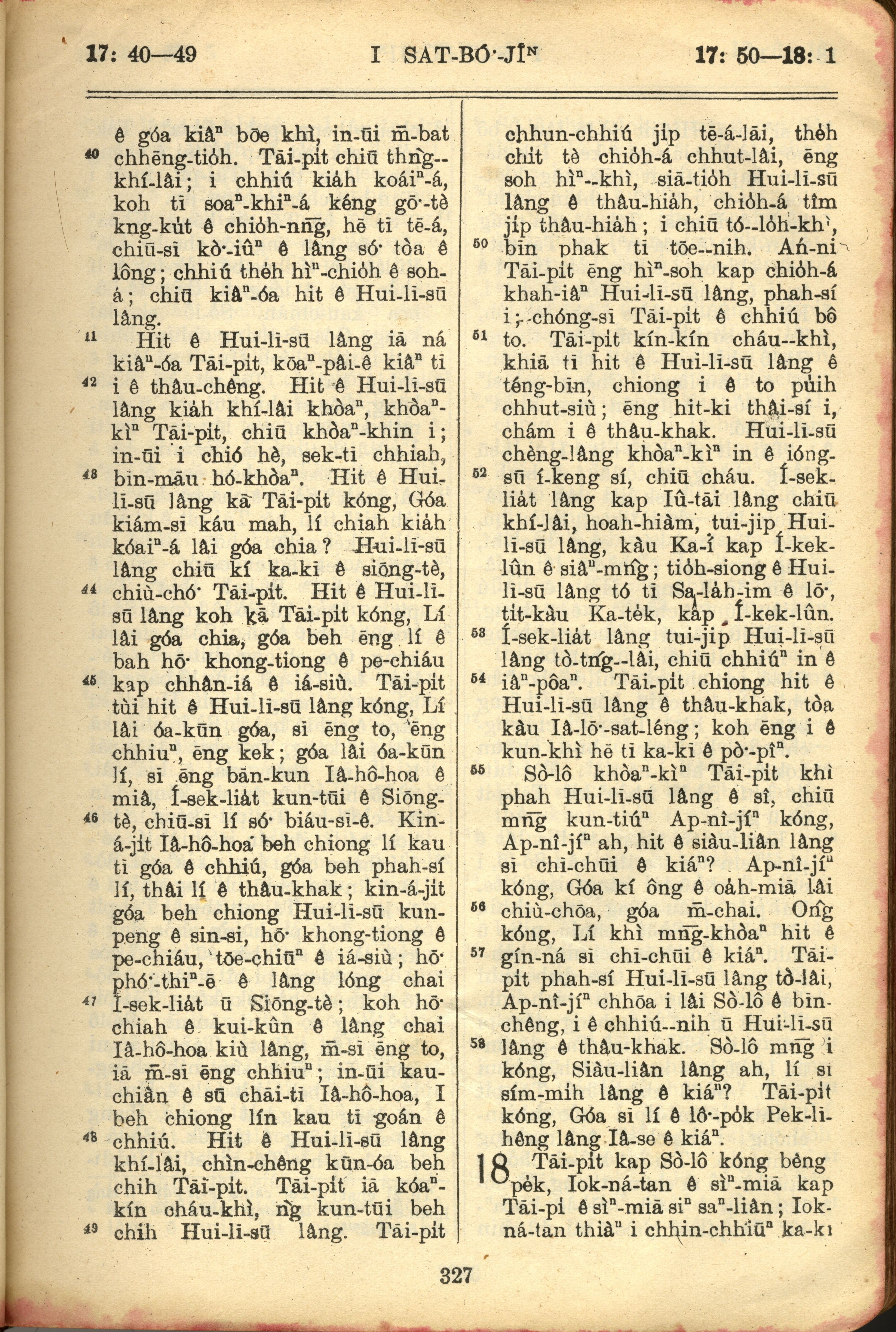 1957年巴克礼全罗台语圣经串珠版 撒母耳记上 17 章 40 节到 18 章 1 节
