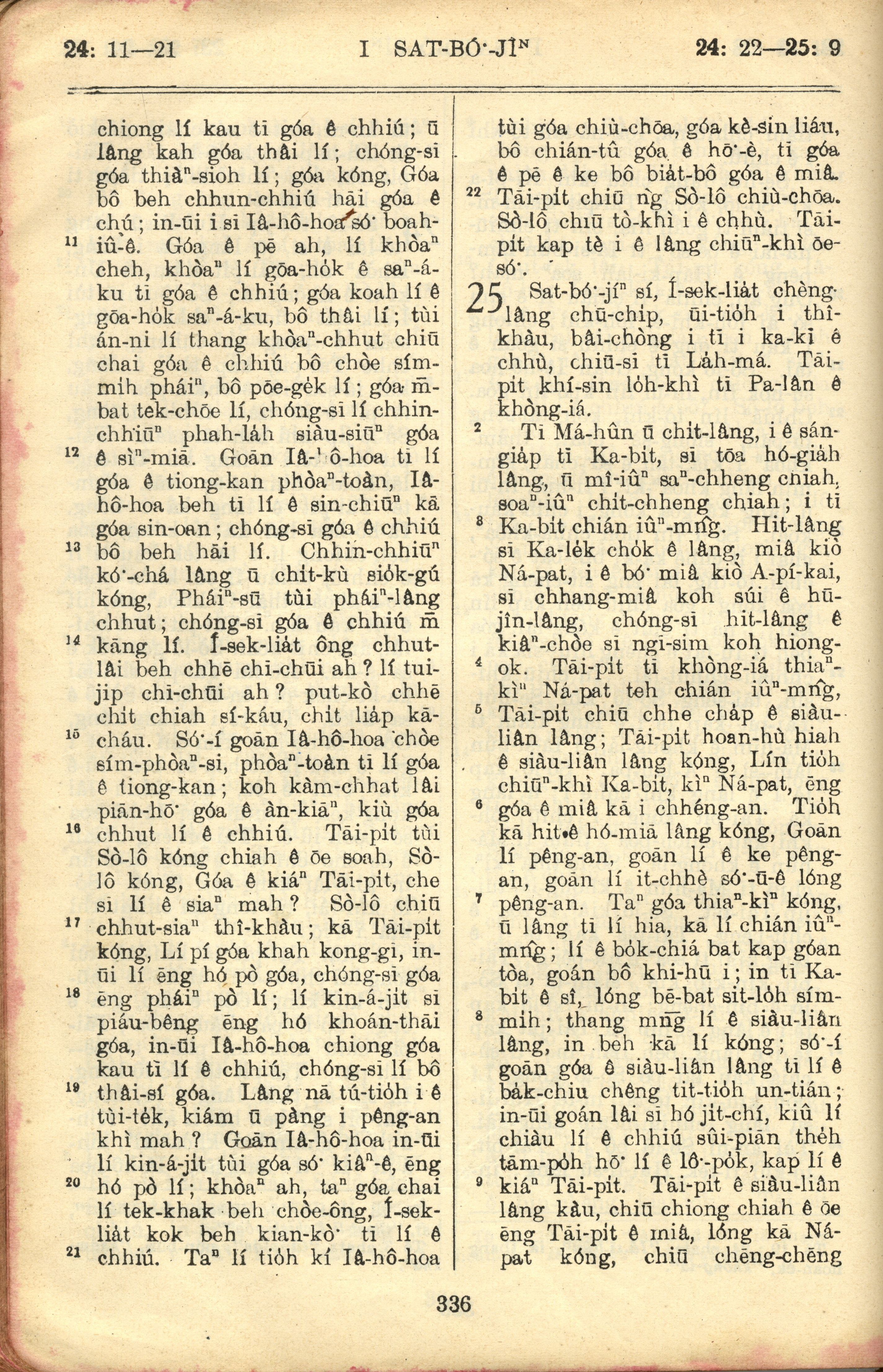 1957年巴克礼全罗台语圣经串珠版 撒母耳记上 24 章 11 节到 25 章 9 节