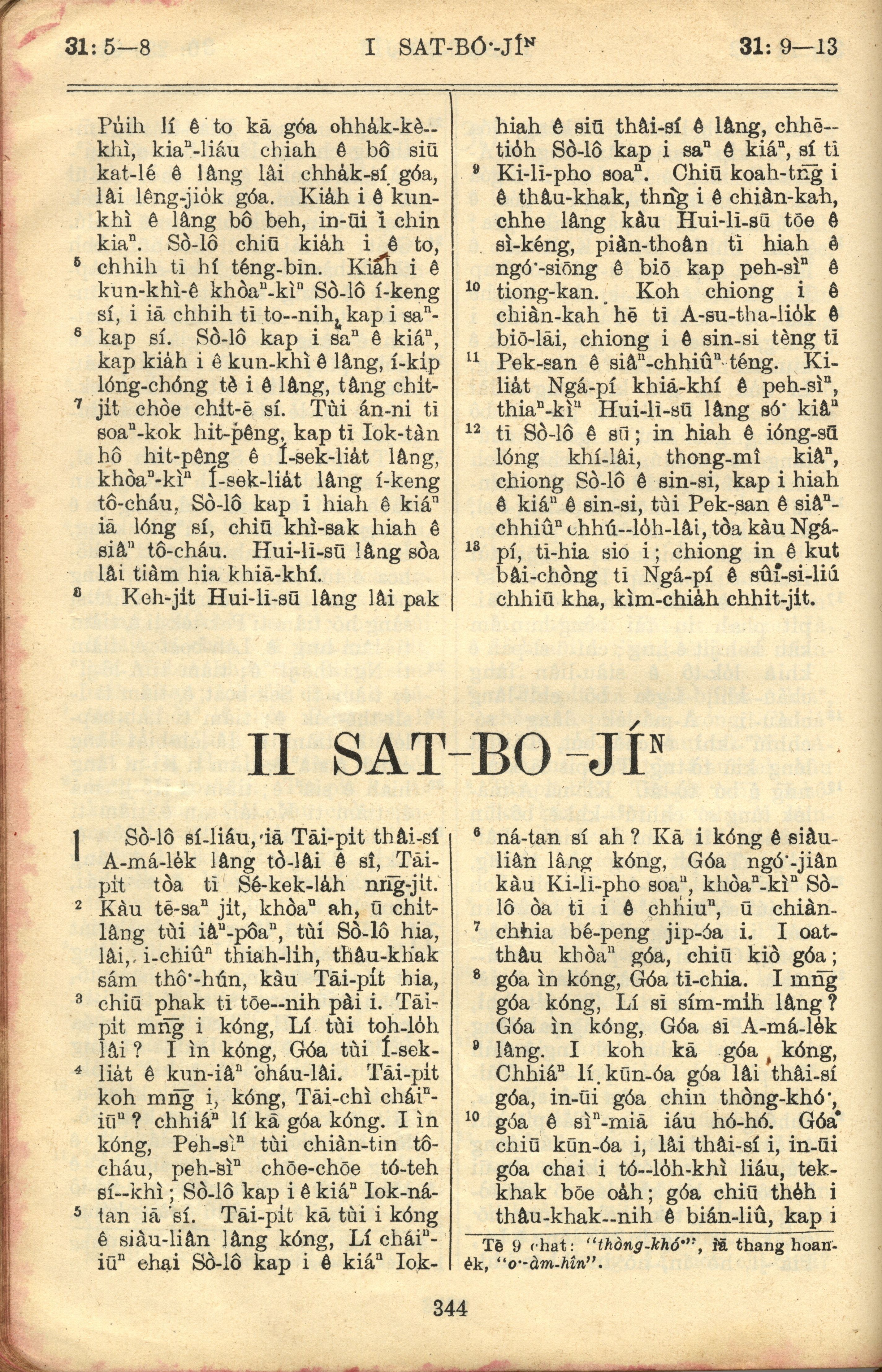 1957年巴克礼全罗台语圣经串珠版 撒母耳记上 31 章 5 节到 31 章 13 节