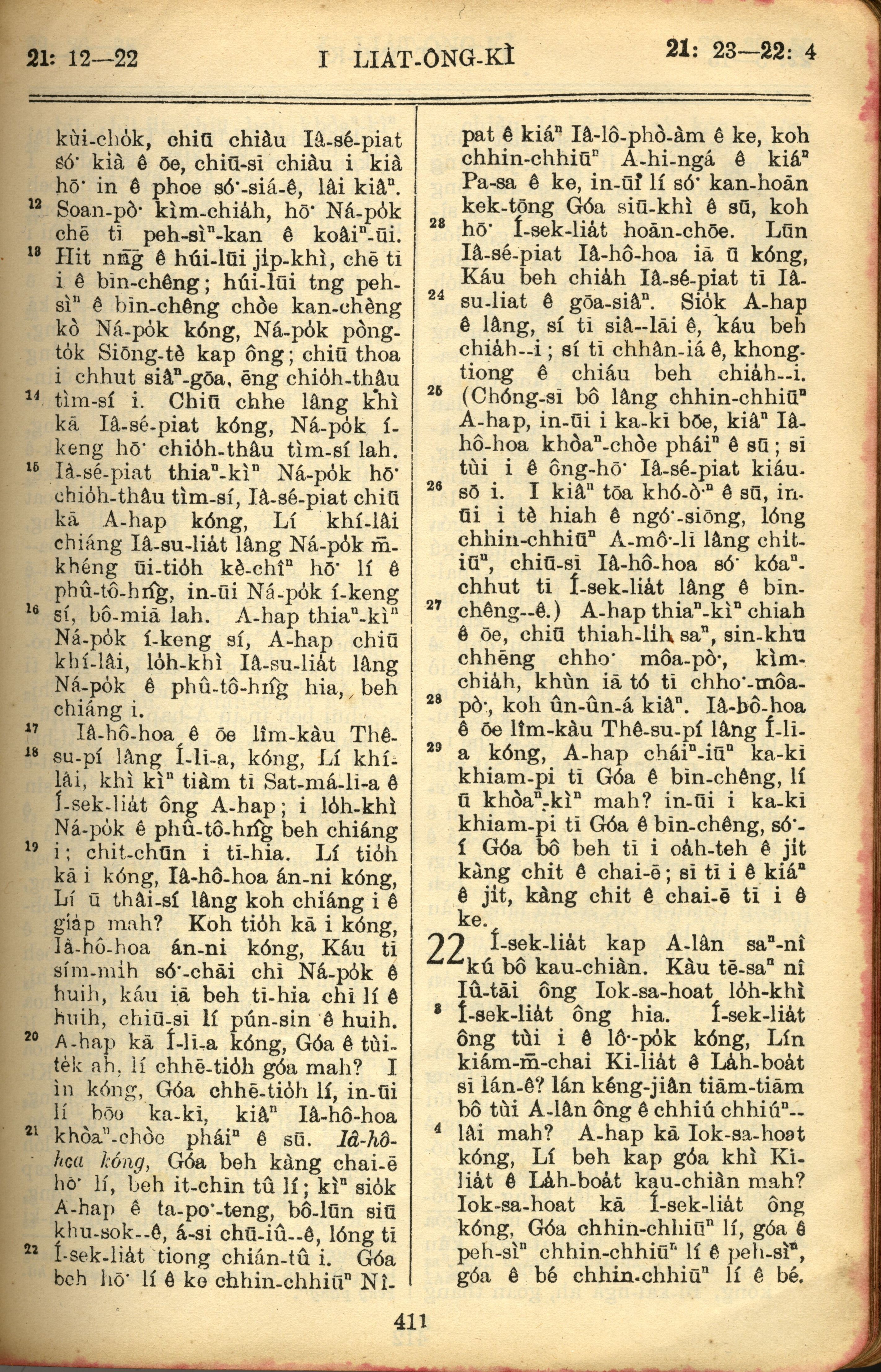1957年巴克礼全罗台语圣经串珠版 列王纪上 21 章 12 节到 22 章 4 节