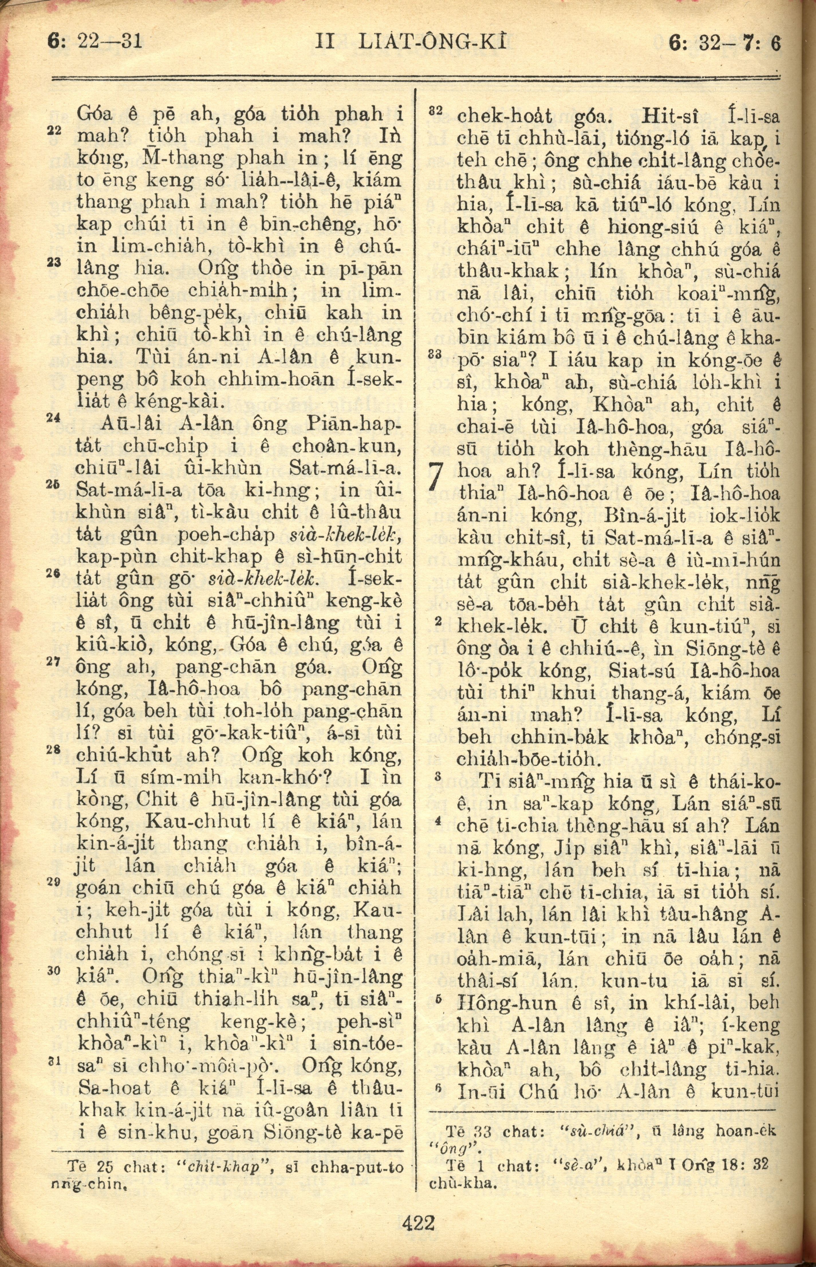 1957年巴克礼全罗台语圣经串珠版 列王纪下 6 章 22 节到 7 章 6 节