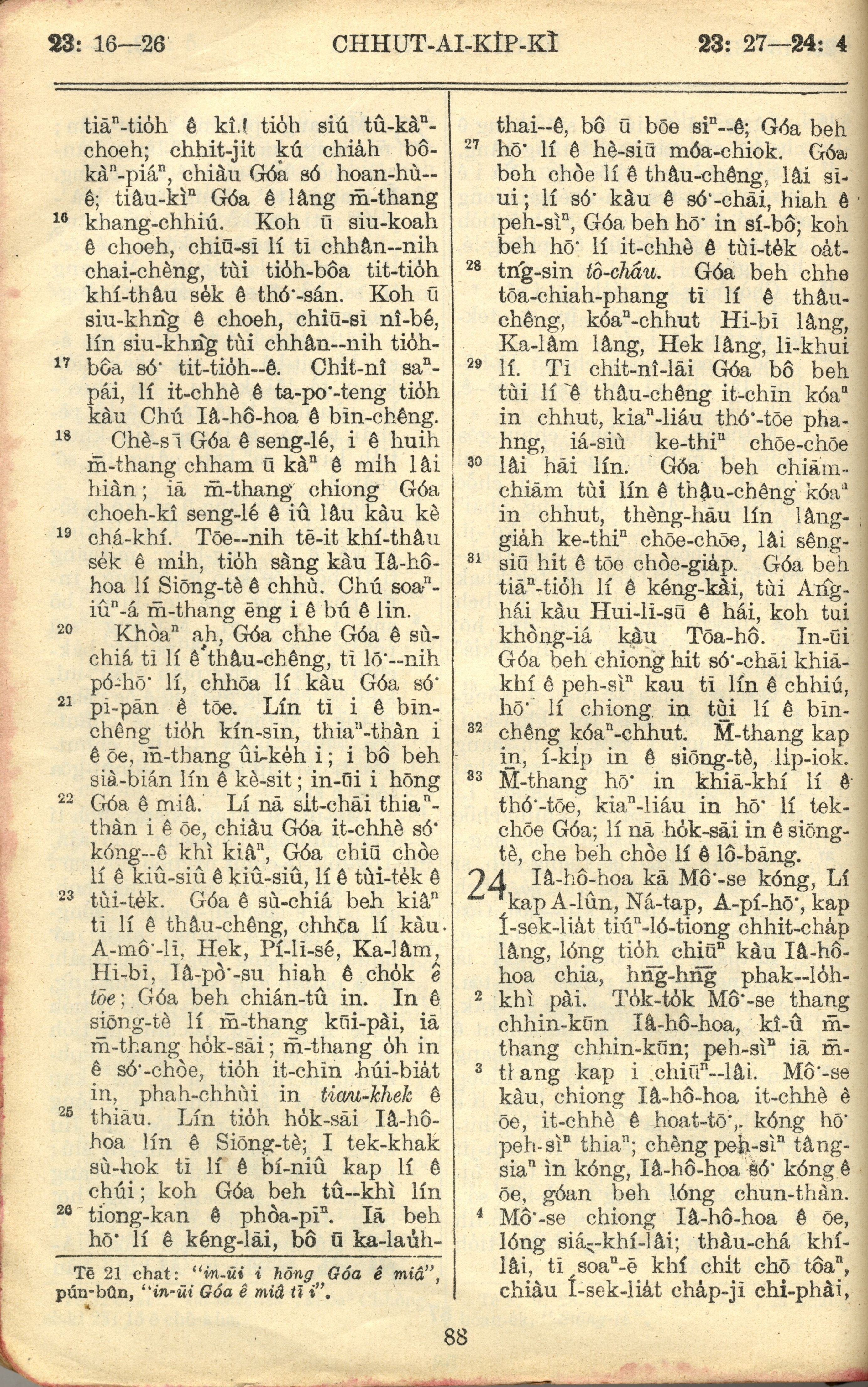 1957年巴克礼全罗台语圣经串珠版 出埃及记 23 章 16 节到 24 章 4 节