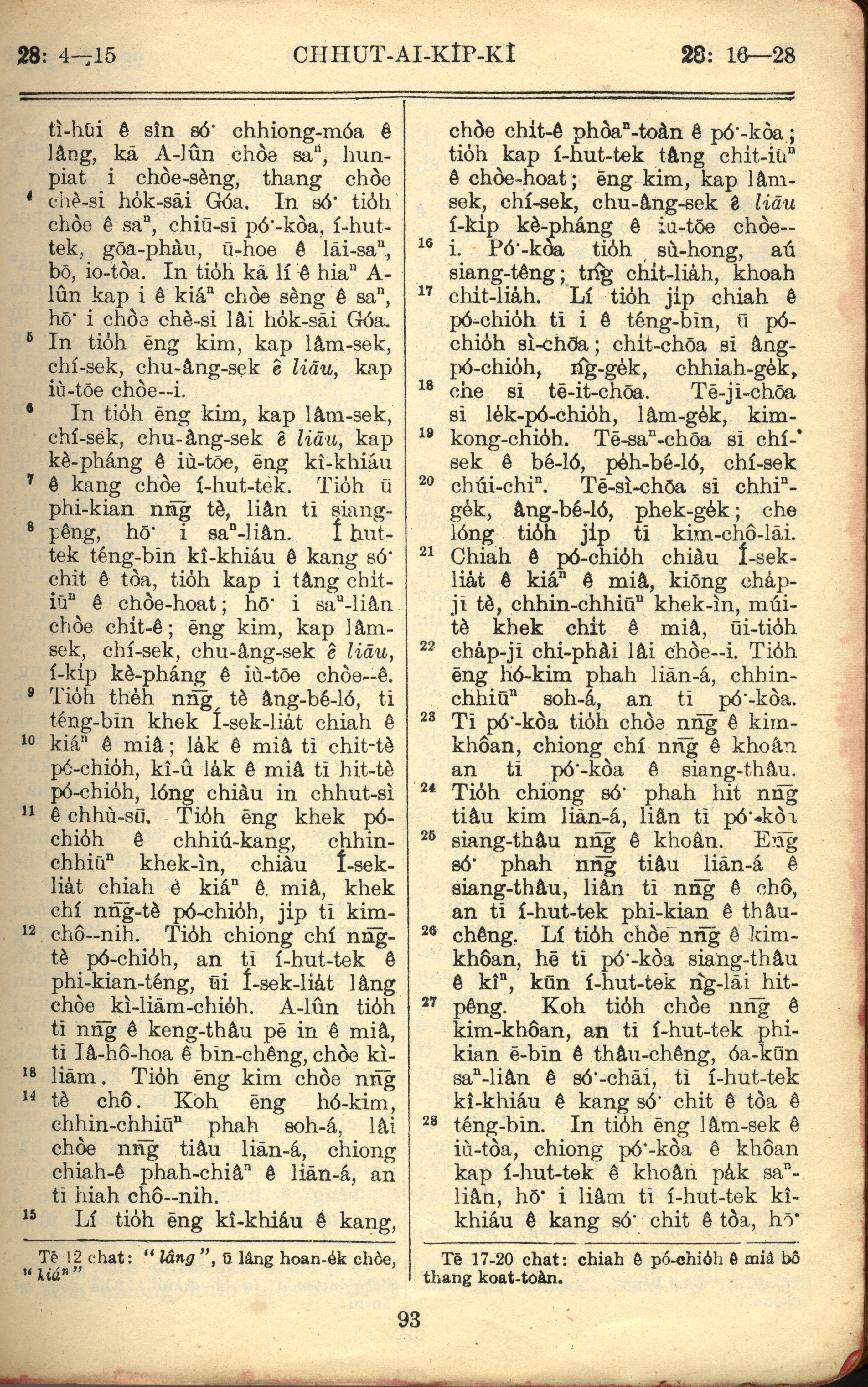 1957年巴克礼全罗台语圣经串珠版 出埃及记 28 章 4 节到 28 章 28 节