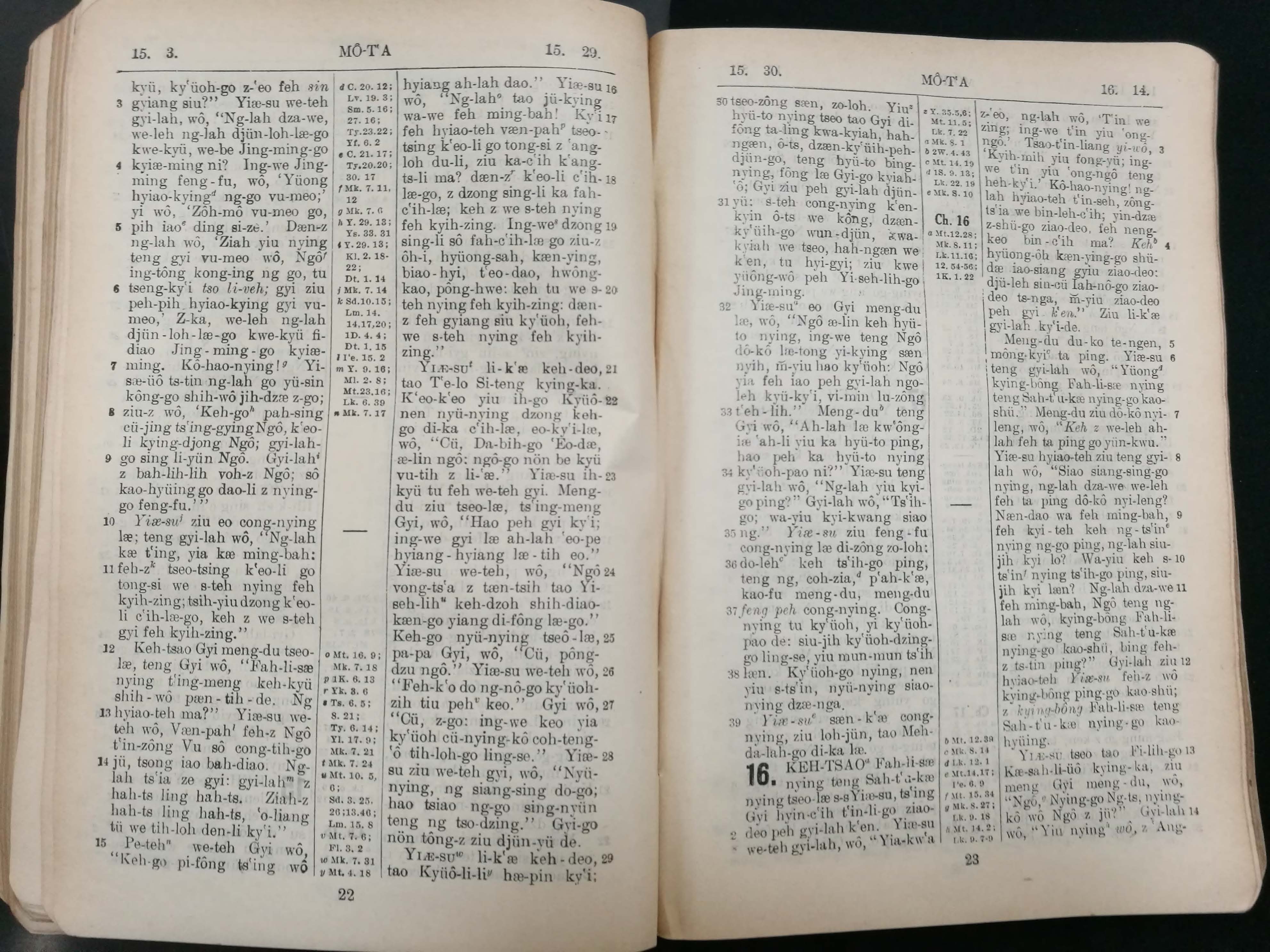 1929年宁波话罗马字新约全书 马太福音 15 章 3 节到 16 章 14 节