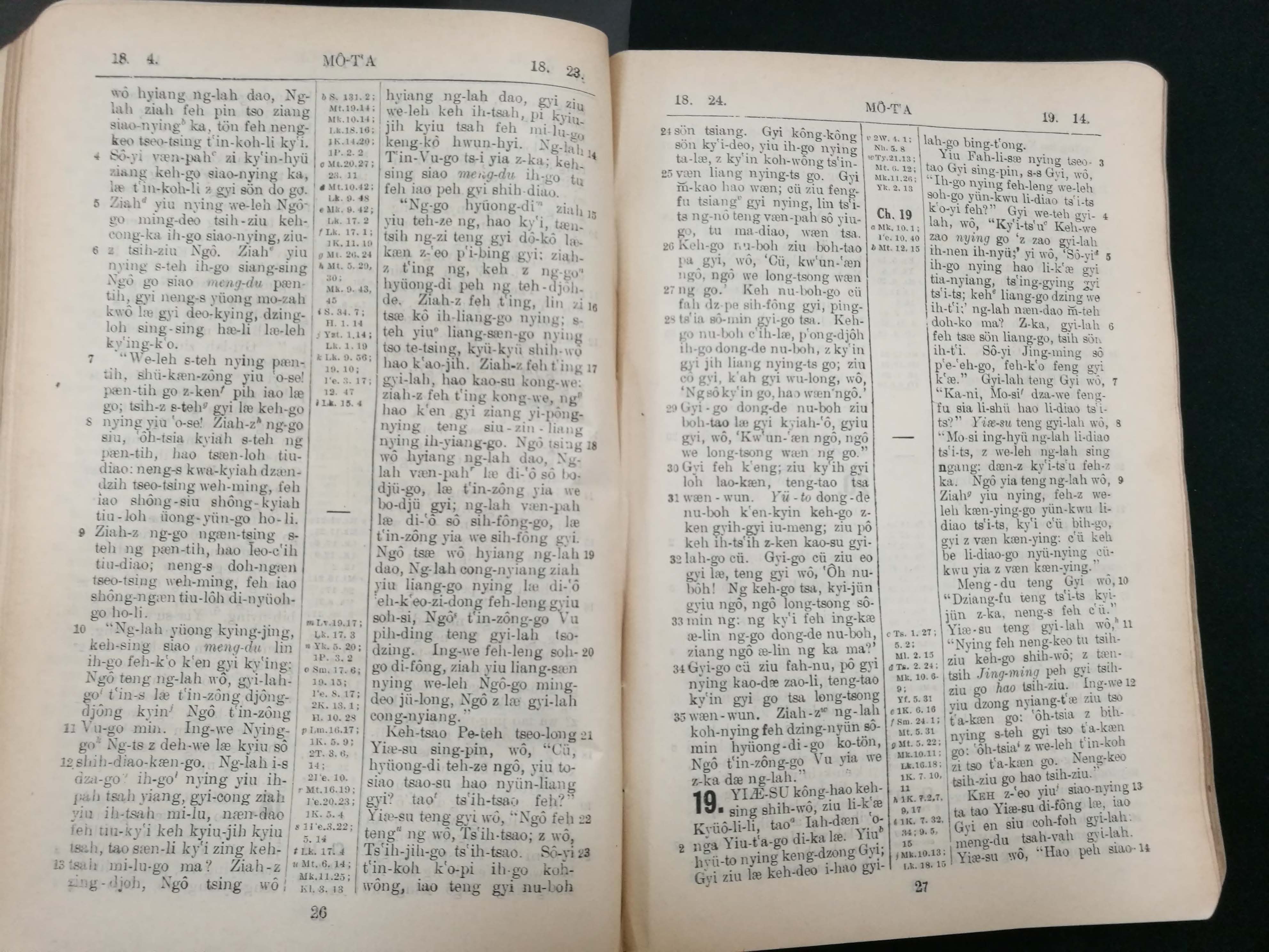 1929年宁波话罗马字新约全书 马太福音 18 章 4 节到 19 章 14 节