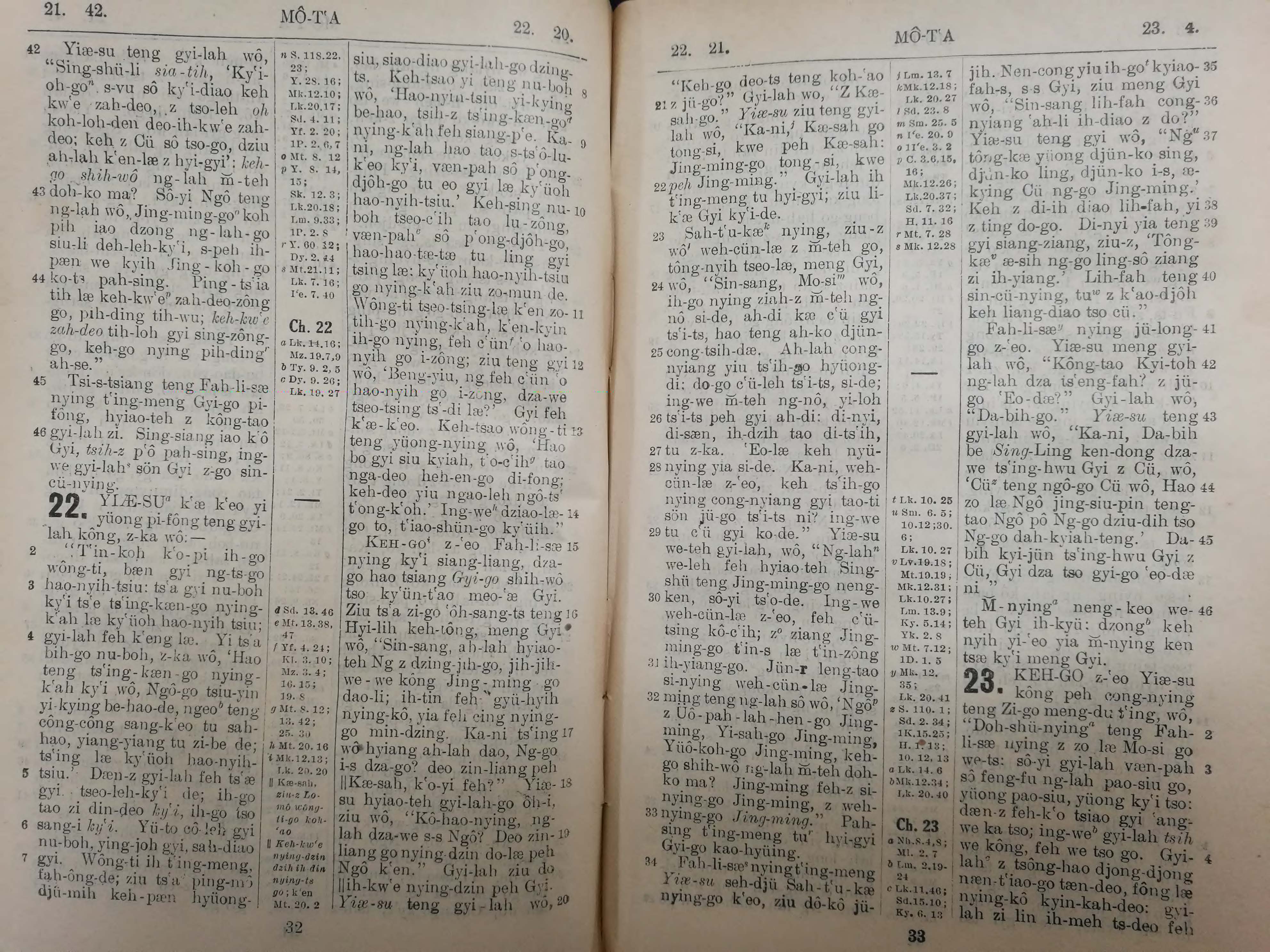 1929年宁波话罗马字新约全书 马太福音 21 章 42 节到 23 章 4 节