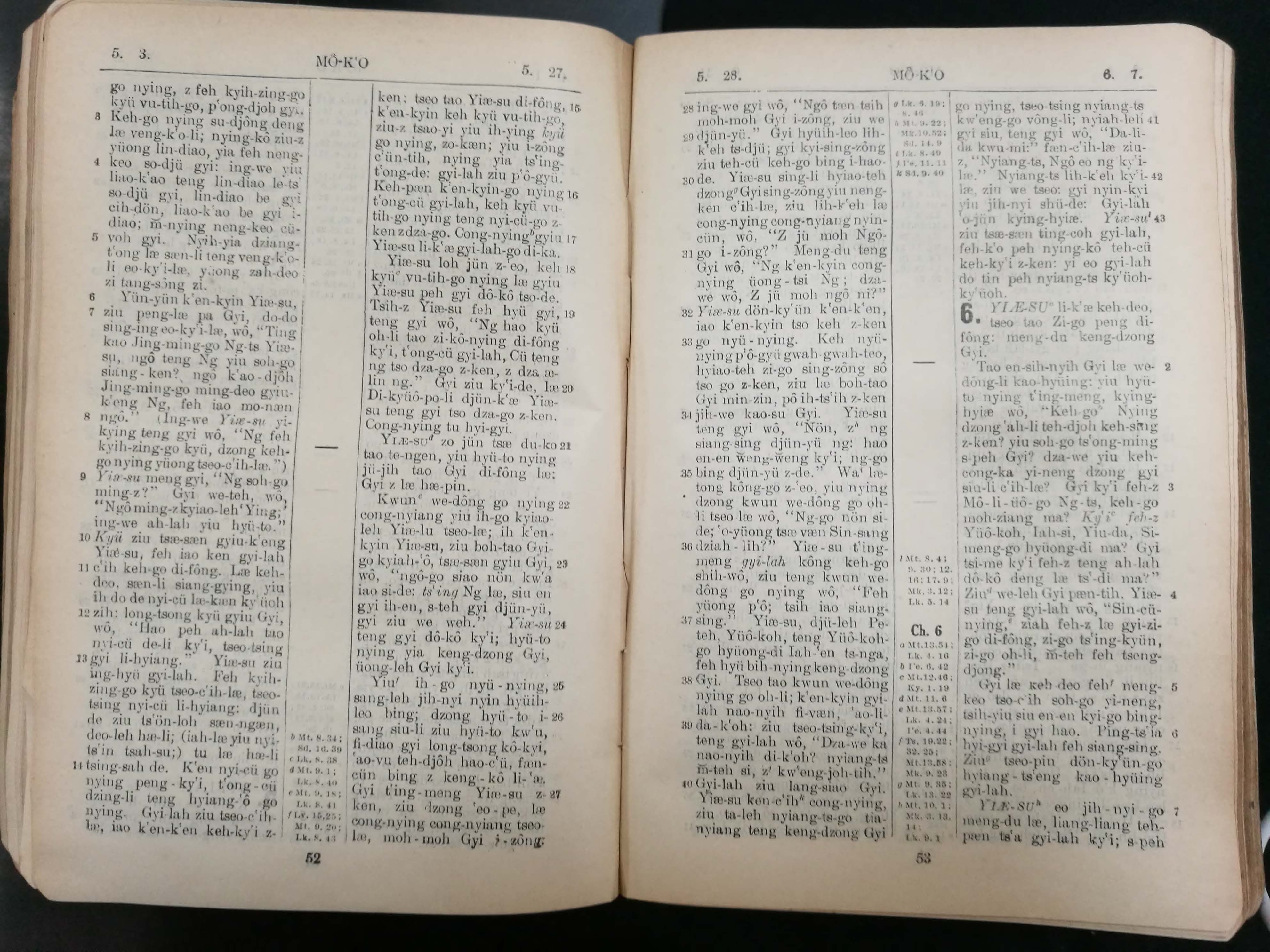 1929年宁波话罗马字新约全书 马可福音 5 章 3 节到 6 章 7 节