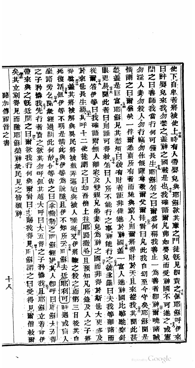 1822年新舊約全書 路加福音 18 章 15 節到 18 章 43 節