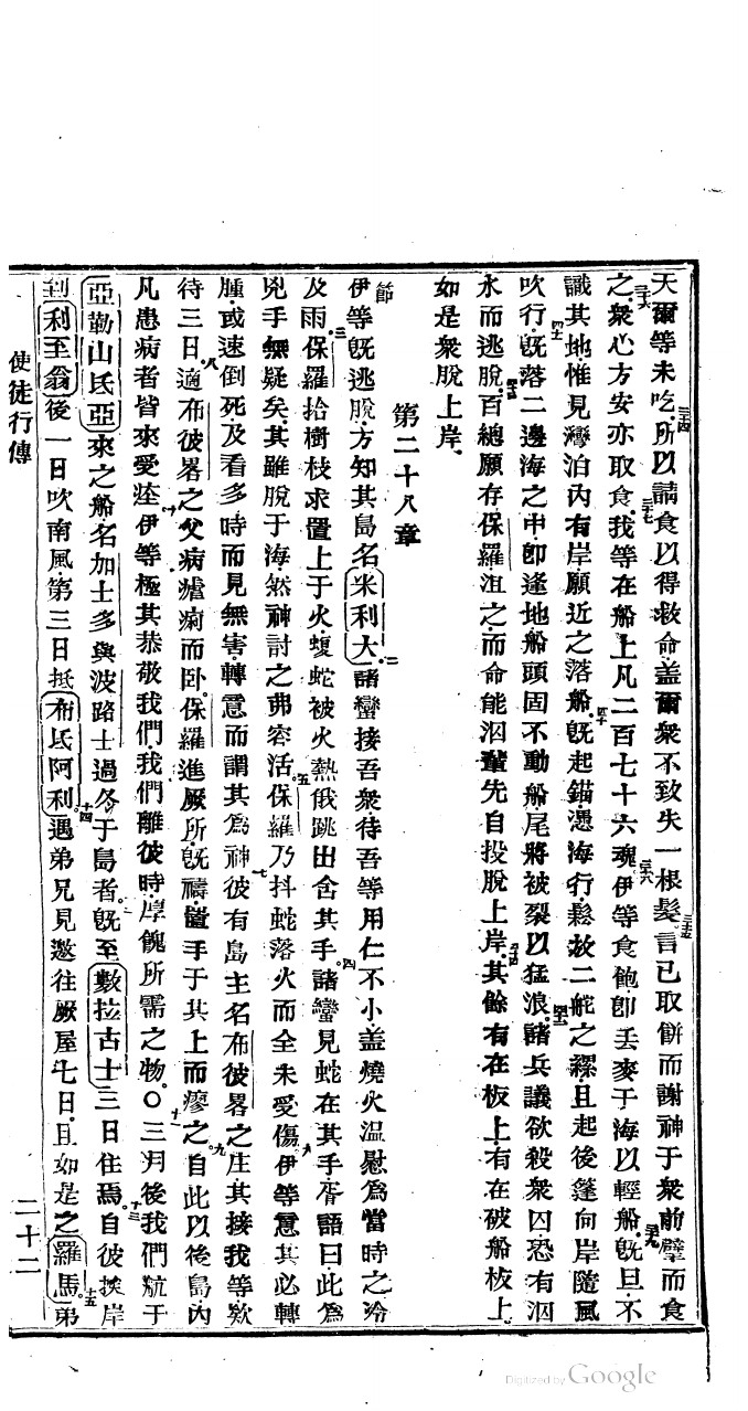 1822年新舊約全書 使徒行傳 27 章 34 節到 28 章 14 節