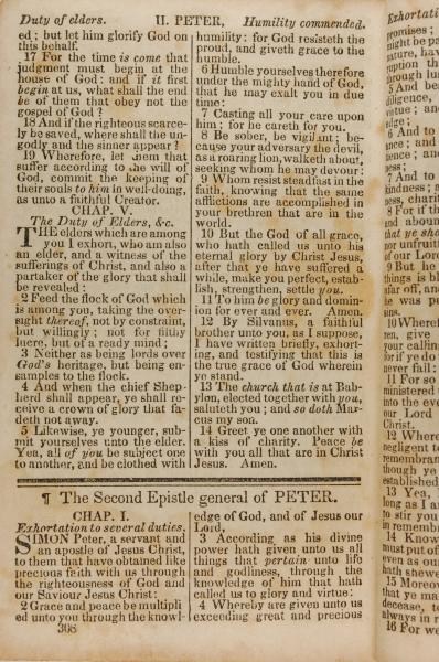 1843年The New Testament 彼得後書 1 章 1 節到 1 章 4 節