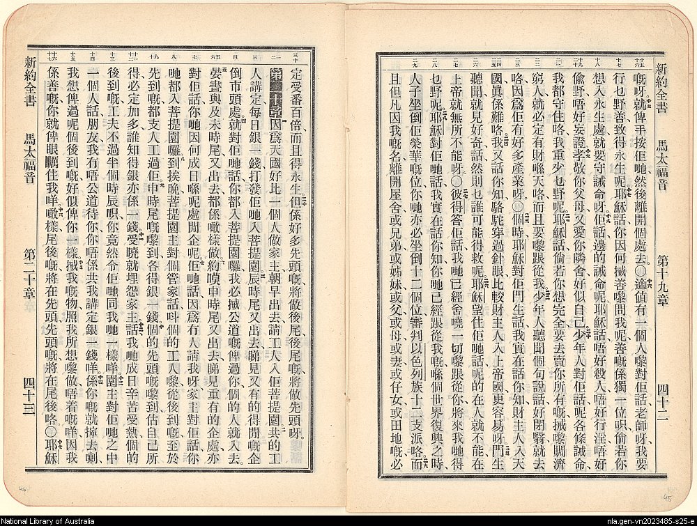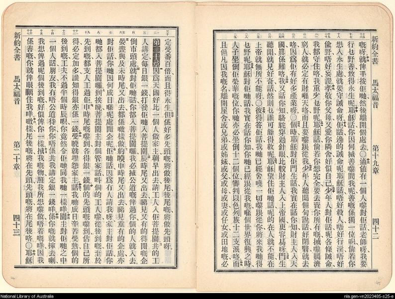 1906年新約全書 馬太福音 19 章 15 節到 20 章 17 節