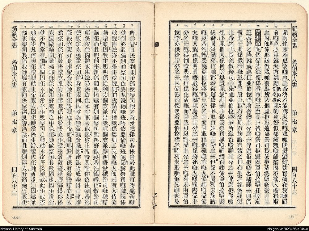 1906年新約全書 希伯來書 6 章 19 節到 7 章 27 節