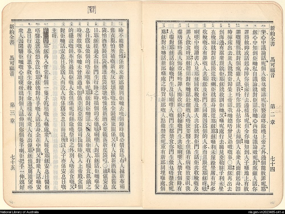 1906年新約全書 馬可福音 2 章 7 節到 3 章 5 節