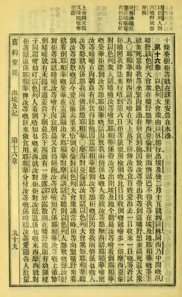 1923年新舊約全書 出埃及記 15 章 27 節到 16 章 16 節