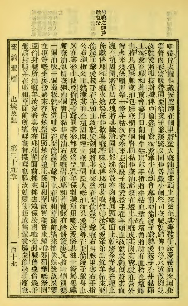 1923年新舊約全書 出埃及記 29 章 6 節到 29 章 28 節