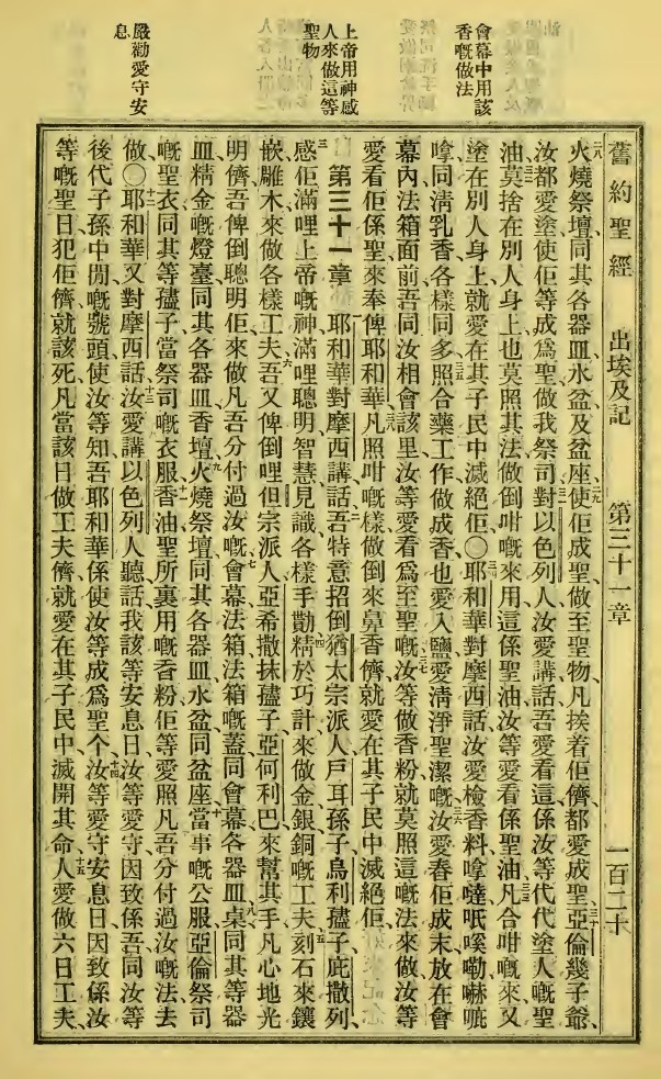 1923年新舊約全書 出埃及記 30 章 28 節到 31 章 15 節