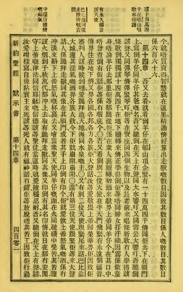 1923年新舊約全書 啟示錄 13 章 17 節到 14 章 13 節