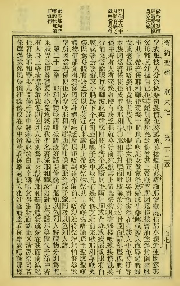 1923年新舊約全書 利未記 21 章 11 節到 22 章 5 節