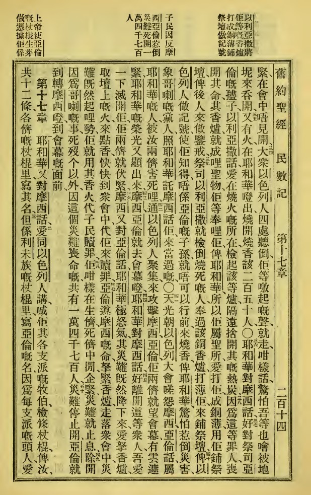1923年新舊約全書 民數記 16 章 34 節到 17 章 3 節