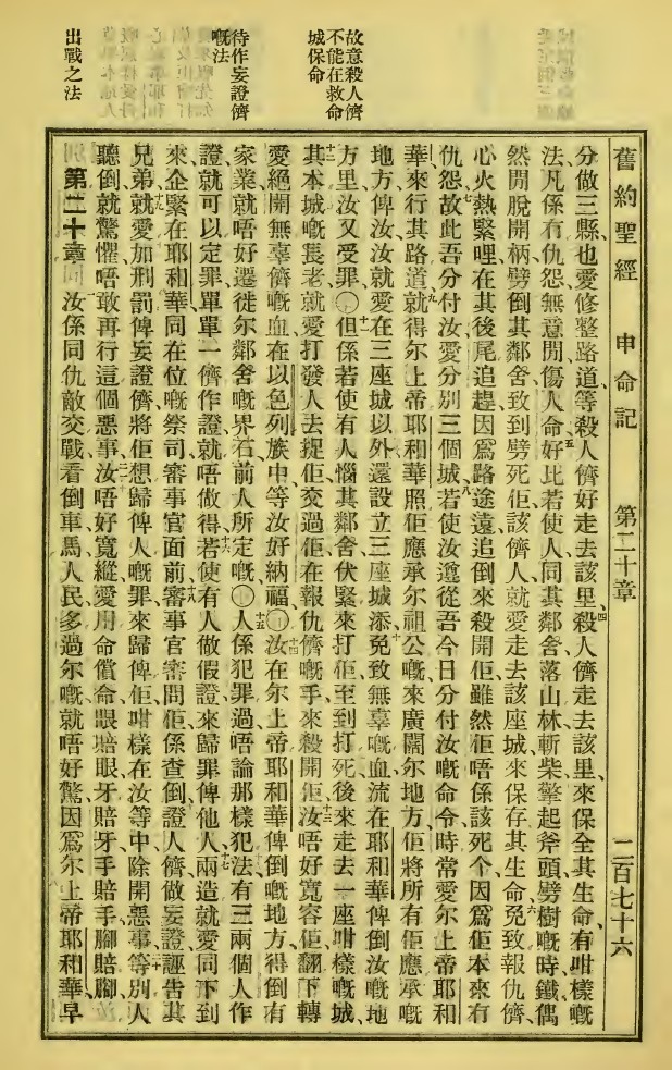 1923年新舊約全書 申命記 19 章 4 節到 20 章 1 節