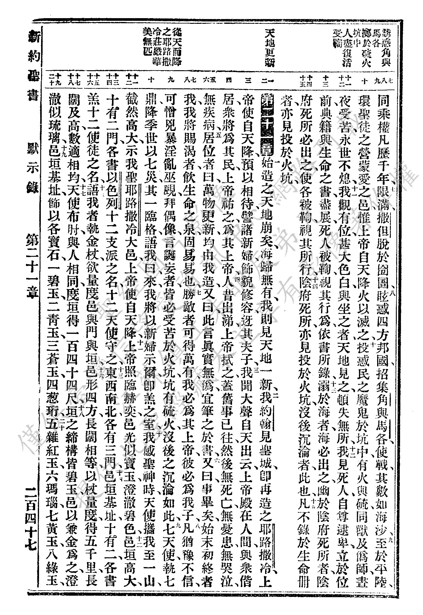 1927年新舊約全書(委辦譯本) 啟示錄 20 章 7 節到 21 章 20 節