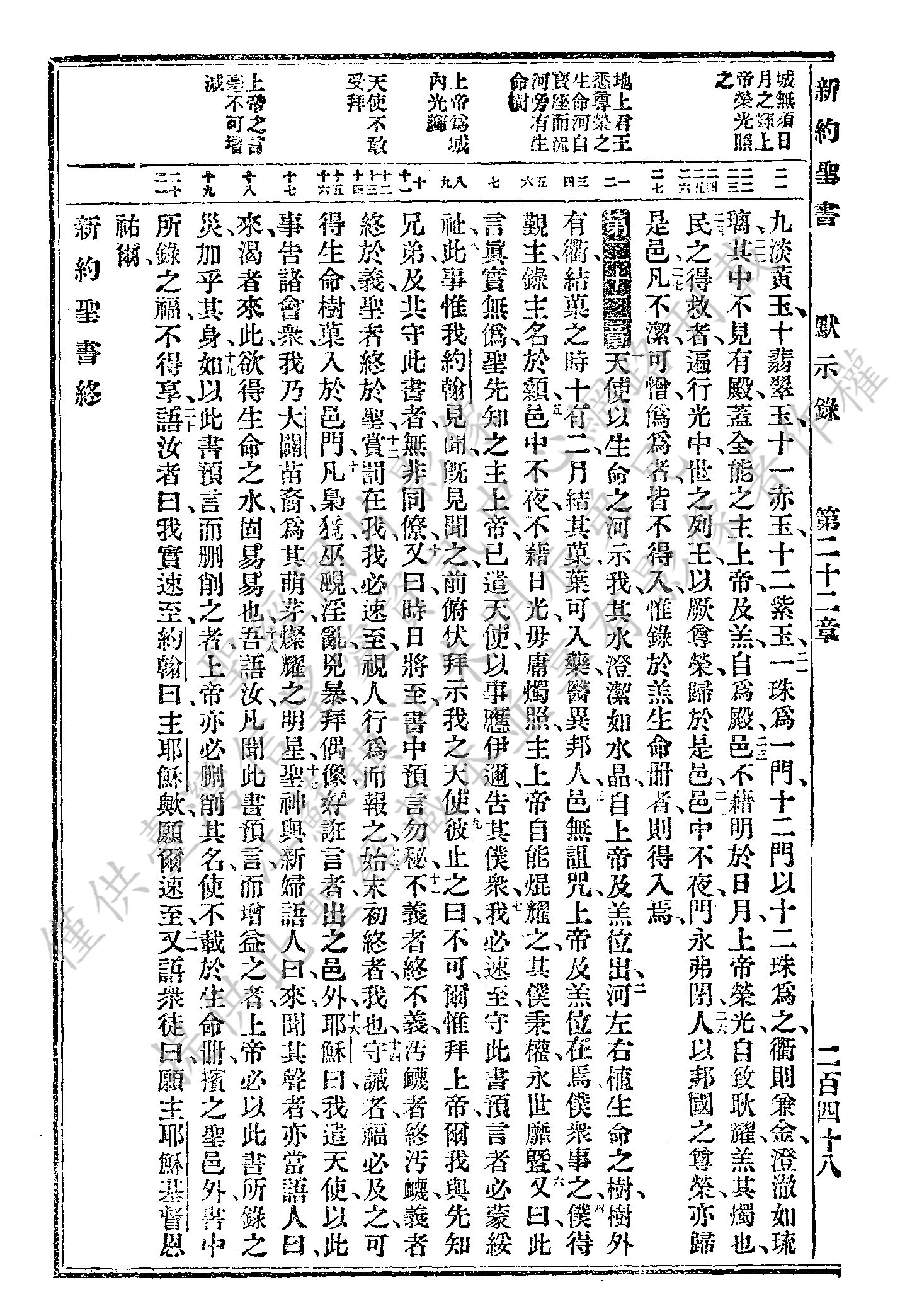 1927年新舊約全書(委辦譯本) 啟示錄 21 章 21 節到 22 章 21 節
